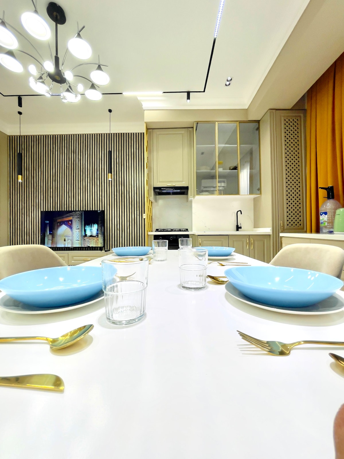 Acest apartament spațios și elegant combină perfect eleganța și confortul. O renovare de designer, mobilier de înaltă calitate și facilități moderne creează o atmosferă de confort și pace. Apartamentul are totul pentru confortul tău, de la paturi confortabile la o bucătărie complet utilată și tehnologii inteligente care îți fac șederea cât mai convenabilă posibil. Apartamentul este situat în centrul tuturor atracțiilor principale și la câțiva pași de Piața Amir Timur, metrou, Muzeul Amir Timur.