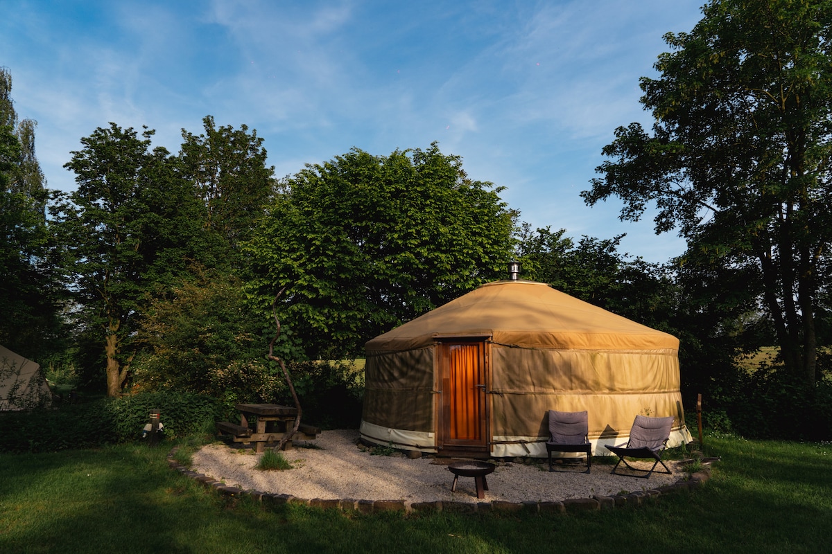 This yurt brings an enchanting oasis of peace and romance. Here, in the middle of nature, luxury envelops you in soft colours and natural materials. Enjoy cosy evenings by the wood stove or sultry summer evenings on the terrace. Leave the hustle and bustle of everyday life behind you. Here time slows down and you live in the moment. Enjoy the peace, nature and embrace the magic of yurt life. A unique glamping experience, in every season!