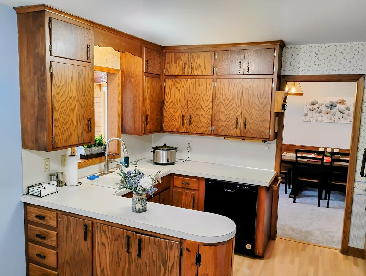 Casă liniștită la etajul al doilea, cu 2 dormitoare, într-o fundătură, chiar lângă Berwood Park, cu trasee de drumeții ușor accesibile. Paturi matrimoniale spațioase și dotări complete sunt disponibile pentru tine. Bucură-te de cafeaua de dimineață în timp ce asculți înregistrări pe player. Serviciile Wi-Fi și de streaming sunt gata pentru tine! Mai puțin de 15 minute până la St. Paul, 20 de minute până la aeroportul Minneapolis și MSP și 25 de minute până la Stillwater/Hudson.