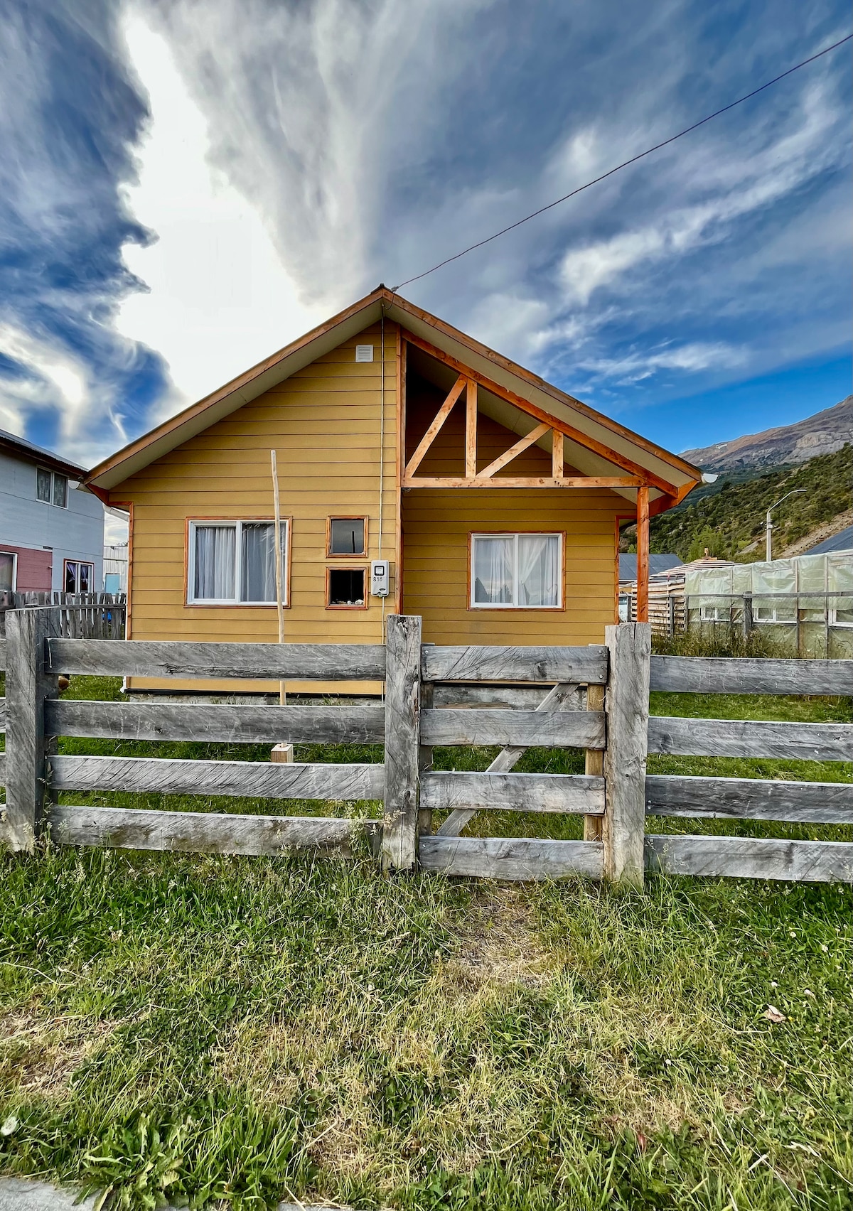 Casă confortabilă, în interiorul unui teren privat, vedere incredibilă la Cerro Castillo, o pădure mică, acces la pârâu și plimbare la Rio Ibañez. Situat la 4 km de intrarea în Parque Cerro Castillo. Are 2 camere, una dublă și una la etajul al doilea cu 4 paturi. Poți solicita un pătuț pentru 1 bebeluș. Casa are Wi-Fi, mașină de spălat cu uscător automat de rufe, aragaz cu lemne și aragaz. Cafea și mate întotdeauna disponibile. Are o izolație excelentă, poți merge în lunile reci.