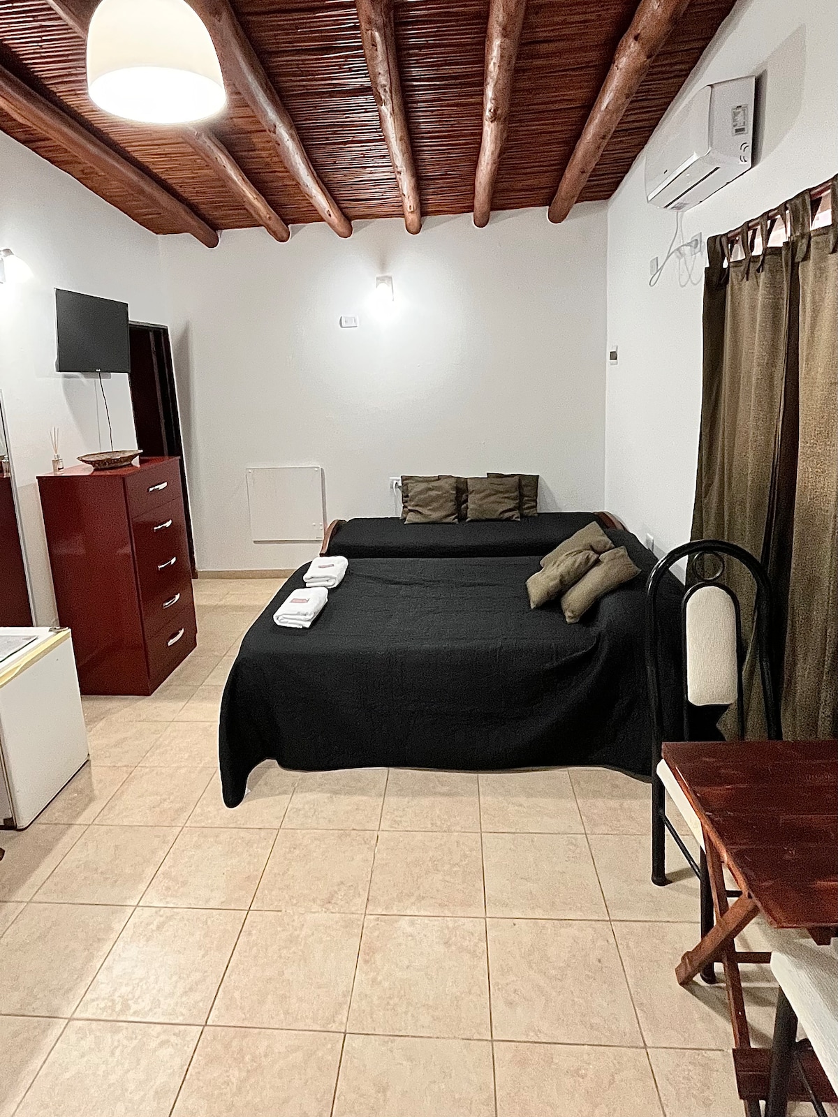 Relájate con toda la familia/amigos, en este tranquilo hospedaje. Nuestro alojamiento cuenta con un departamento-monoambiente urbano, completamente equipado, pensado para familias o grupos de hasta 4 personas. Su ubicación estratégica permite acceder fácilmente a comercios, restaurantes y al portal de ingreso del Parque Natural Ischigualasto ( Valle de la Luna). Garantiza una estadía agradable para escapadas cortas, vacaciones o tiempos laborales.