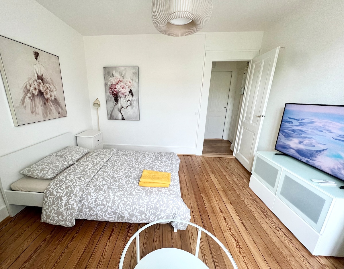 Apartament modern cu 1 dormitor în inima orașului Geneva, perfect pentru afaceri sau agrement. Bucură-te de un dormitor confortabil cu un pat dublu confortabil, un living luminos cu canapea extensibilă pentru 2 persoane și TV, o bucătărie complet utilată și o baie elegantă din marmură cu duș. Locația centrală pune cafenelele, magazinele și mijloacele de transport la îndemână, precum și gara și centrul istoric al orașului, la mai puțin de 5 minute de mers pe jos. O ședere elegantă și convenabilă pentru cupluri, persoane care călătoresc singure sau persoane care călătoresc în interes de afaceri.