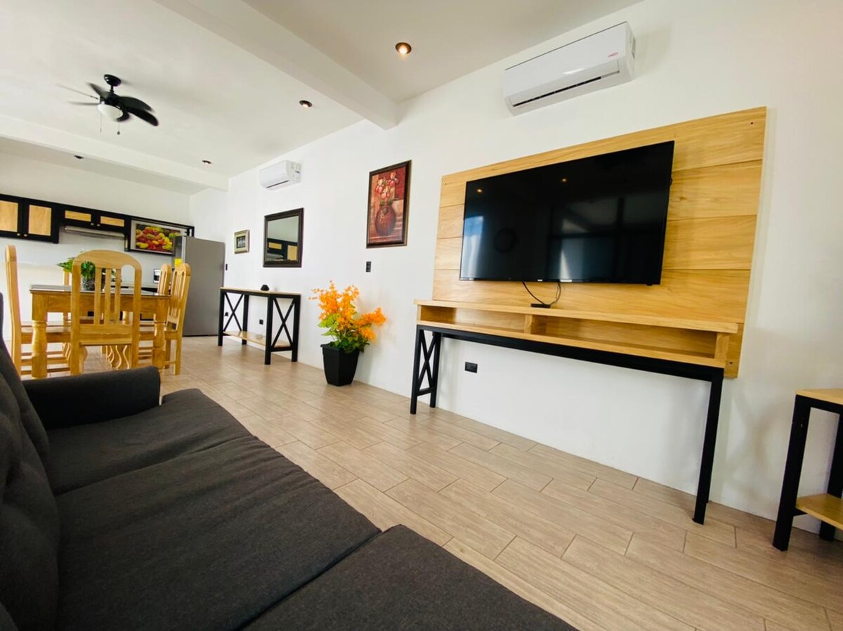Bucură-te de confortul acestui loc liniștit și independent, în fața Interplaza Xela. Te poți odihni sau lucra în mediile sale în singurătate sau cu mai multe persoane, are o chicinetă utilată, sufragerie pentru 4 persoane, living (canapea extensibilă) cu divertisment (TV de 43", Wi-Fi, Netflix și jocuri de societate) și dormitor cu un pat king-size, birou, dulap și o baie confortabilă cu apă caldă. Parcare securizată gratuită pentru până la 4 vehicule.