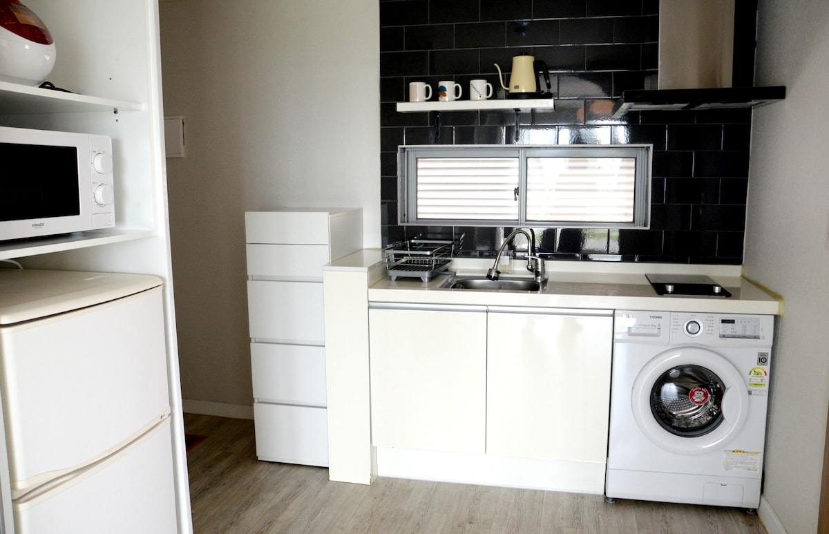 Jeju și Spring este o pensiune chiar în fața Mării Jeju Samyang și la 5 minute de mers pe jos de plaja Samyang. Cazare disponibilă pentru o lună (te rugăm să ne contactezi) Jeju Wabom Room 205 este o cameră unde poți sta pe canapea și poți vedea peisajul rural și marea. Și există o terasă dedicată camerei, astfel încât să puteți simți peisajul retras chiar și în cameră. Camera 205 este dotată cu o bucătărie pentru gătit simplu, veselă, ustensile de gătit, cuptor cu microunde, frigider, fierbător electric, autonomie electrică etc. și poți viziona Netflex. Pentru siguranța oaspeților noștri de la coronavirus, colaborăm cu companiile de carantină pentru a intra periodic în carantină și a le dezinfecta imediat după plecare, așa că te rugăm să te asiguri ^ ^ Jeju și Spring în Jeju Olle Trail Route 18 se străduiește întotdeauna pentru un loc confortabil de odihnă pentru oaspeți.