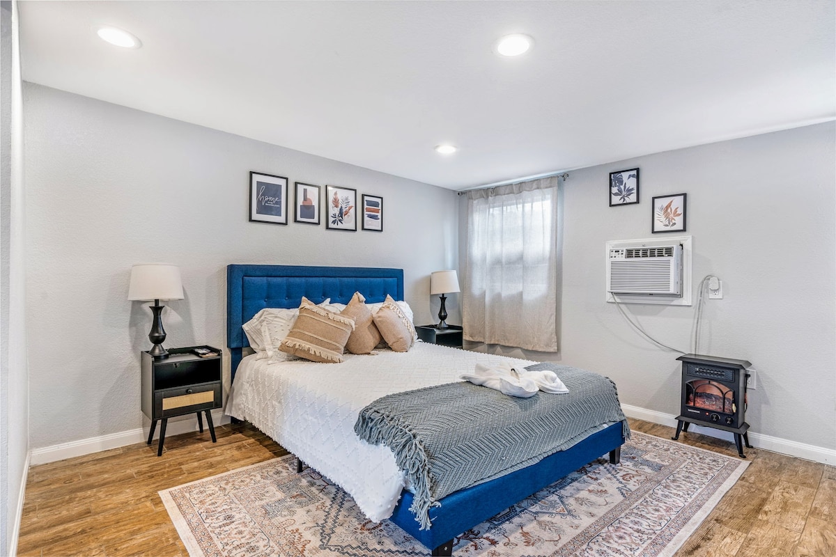 Bucură-te de o experiență elegantă în această suită contemporană cu buclă interioară, situată central! Am finalizat o renovare completă a acestui Airbnb, spre deosebire de orice ai văzut în Houston. Acesta include un dormitor de lux și o baie cu toate dotările atât de necesare. Potrivită pentru familii și animale de companie, cu acces la o curte foarte mare pentru ca animalele de companie/copiii tăi să alerge și să se bucure doar pentru TINE. Privat. Curte pavată/zonă relaxantă de foc. Spațiu de parcare excelent. Acces ușor la I-10 și aproape de cartierele din Houston.