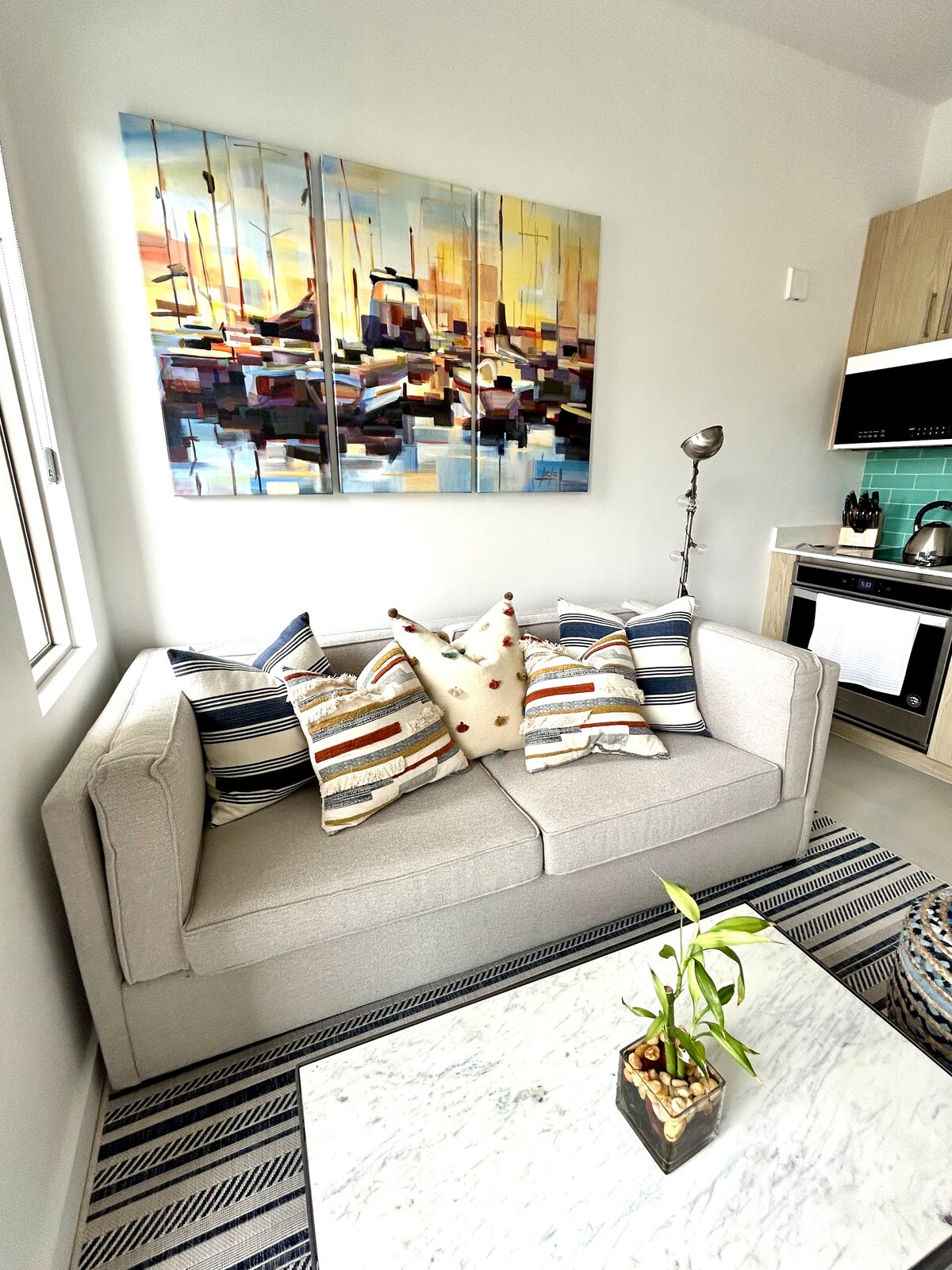 Enjoy a modern contemporary experience at this centrally-located 1 bed residence in Grand Harbour, with free parking and wifi, 5 mins from the nearest beach Smiths Cove. With on site restaurants, coffee shop, pool, grocery store, salon and yoga studio, the apartment provides easy areas of Grand Cayman within 15 - 30 minutes (outside of rush hour). Everything you need is within a 2 minute (or less!) walking distance. Easy access to the unit, plenty of parking, 24 hour security.
