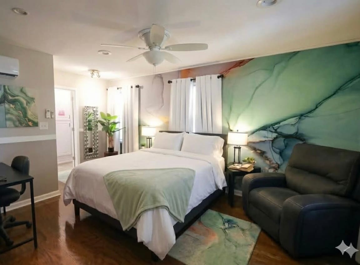 Cuibărit în copaci, Cuibul lui Arhimede la ferma Emu este evadarea romantică de vis pe care o căutai. Această escapadă personalizată a fost concepută pentru relaxare și răsfăț de sine, completată cu dotări speciale pentru a-ți face șederea confortabilă, cu vedere la vârful copacilor și la grădină de la fiecare fereastră, unde poți admira emu, curcani, lebede și păsări de mazăre care hoinăresc dedesubt. Este liniștit și privat, dar la câțiva pași de East Atlanta Village- unul dintre cele mai tari cartiere din Atlanta.