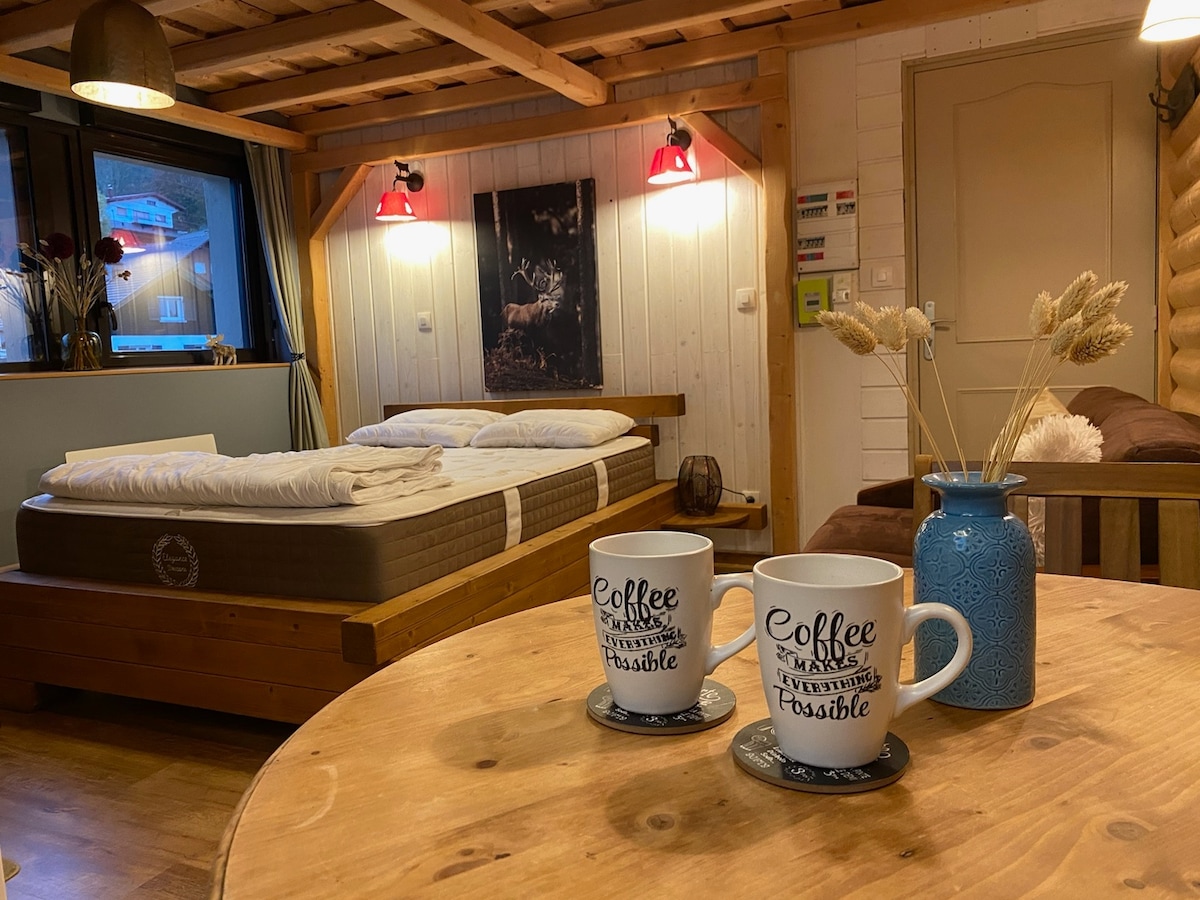 Ia o pauză și relaxează-te într-un studio cu un caracter cocooning în cabanele Vosges. Un efect garantat și exotic, va fi locul ideal pentru a te deconecta de la viața de zi cu zi. Apartamentul nostru fermecător de 20 de metri pătrați și situat ideal în inima orașului Gerardmer, aproape de un supermarket și o brutărie * De asemenea, ne bazăm pe oaspeții noștri să aducă propriile lor cearșafuri și prosoape! Saltea de înaltă calitate (140/200) cu (inclusiv plapumă și pernă)