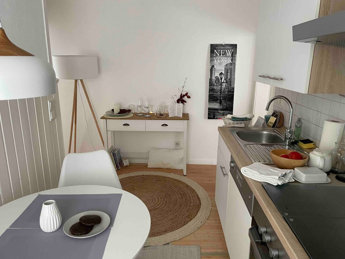 Mică pensiune idilică în mediul rural, la doar 20 de minute. distanță de orașul Documenta din Kassel, cu site-ul patrimoniului cultural mondial Bergpark Wilhelmshöhe. Mobilat cu drag pentru 2 persoane cu bucătărie mică, dormitor și baie nouă modernă. Bucură-te de liniște și intimitate pe propria ta terasă mică, cu acces privat. De asemenea, se poate ajunge la Kassel cu transportul public prin intermediul gării din Guxhagen, care se află la 3 km. La 2,5 km se află Mondsee, un lac pentru scăldat.
