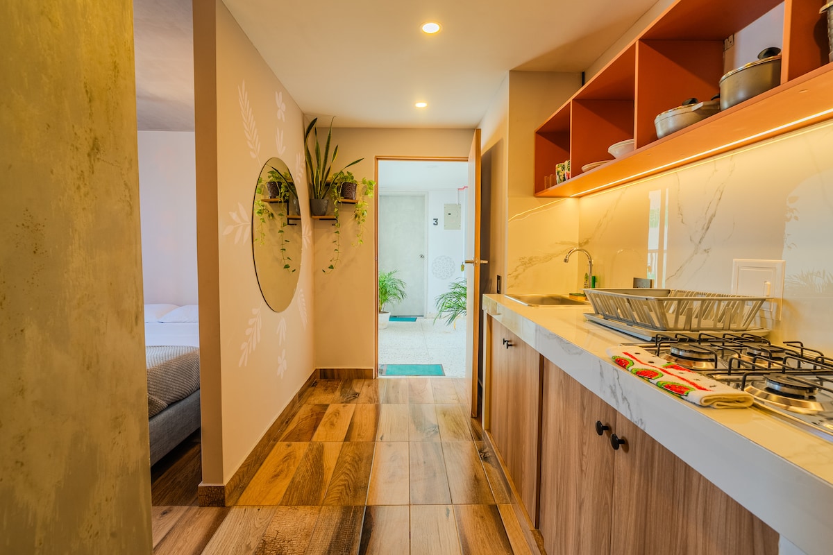 Acest studio frumos nou se află în cartierul istoric Getsemani, în orașul cu pereți. Clădirea, care este complet nouă, este combinația perfectă de confort și eleganță din Caraibe. Garsoniera are un balcon foarte confortabil și un jacuzzi privat cu apă ambientală pentru a te împrospăta de soarele fierbinte. Se află la câțiva pași de cele mai bune obiective turistice din centrul orașului; restaurante, baruri, piețe. Perfect pentru cupluri, persoane care călătoresc singure sau pentru un grup mic de 4 persoane.