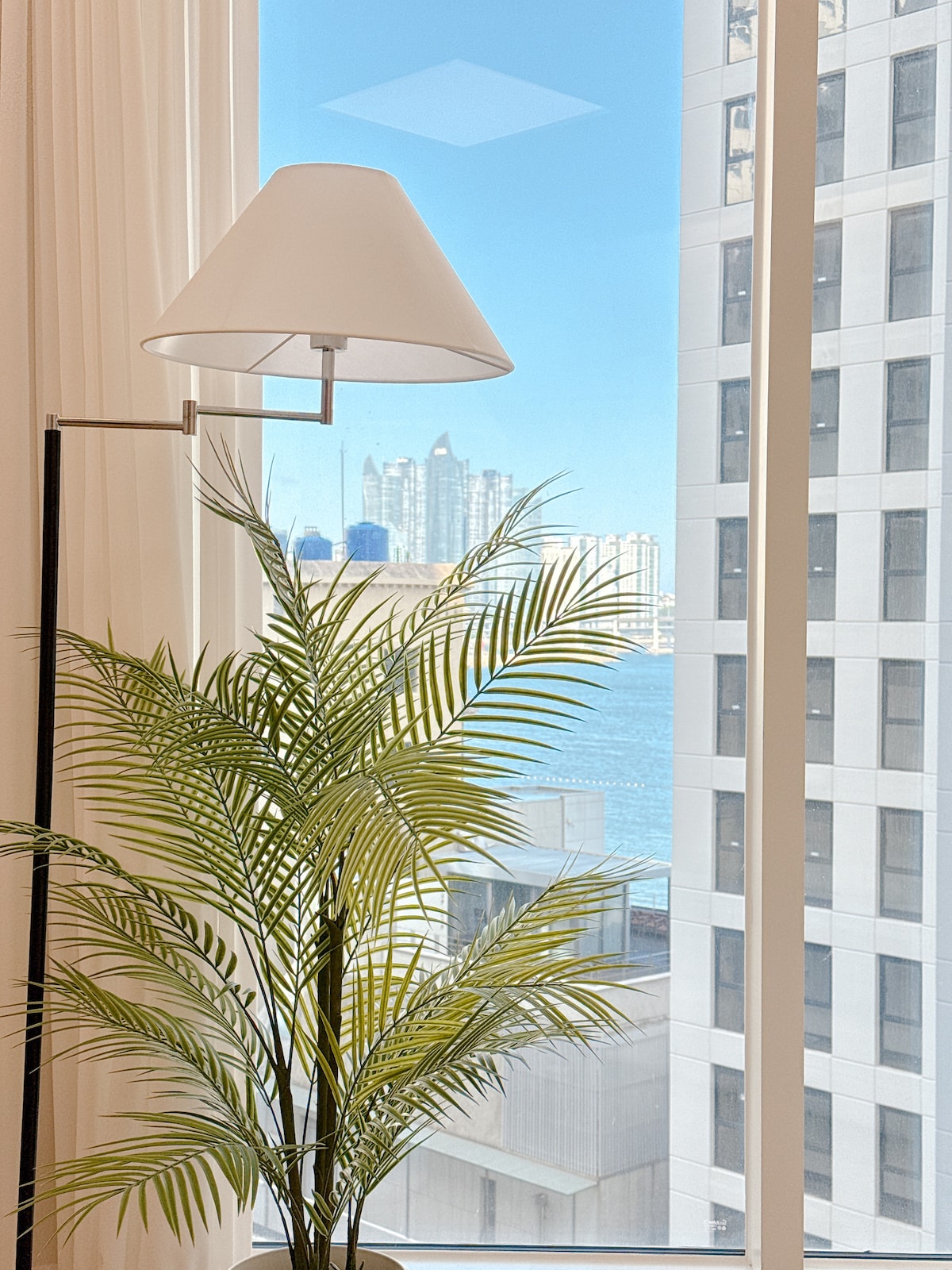 ✨️ Când deschizi fereastra din living, aceasta dă direct spre terasă, unde te poți bucura de vederea la ocean. Dacă te odihnești pe canapea, apoi deschizi fereastra și ieși afară, Poți simți marea chiar de pe terasă. Nu este vorba doar de priveliștea de la fereastră, Este diferit prin faptul că poți ieși afară și te poți bucura de ea direct. 2 paturi matrimoniale „Queen” + 1 pat matrimonial „King”, cu o amenajare spațioasă și o baie Excelent pentru a sta cu familia sau prietenii. Terasa este excelentă pentru relaxare și pentru a te bucura de vederea la ocean fără a fi orbit de lumina soarelui. Deschide fereastra și ieși pe terasă pentru a te bucura imediat de ocean. Aceasta este înregistrată și administrată ca o societate legală pentru servicii de home sharing pentru cetățeni locali și străini, sub rezerva cazului special al Biroului și Administrației Haeundae-gu, 🐳Busan.