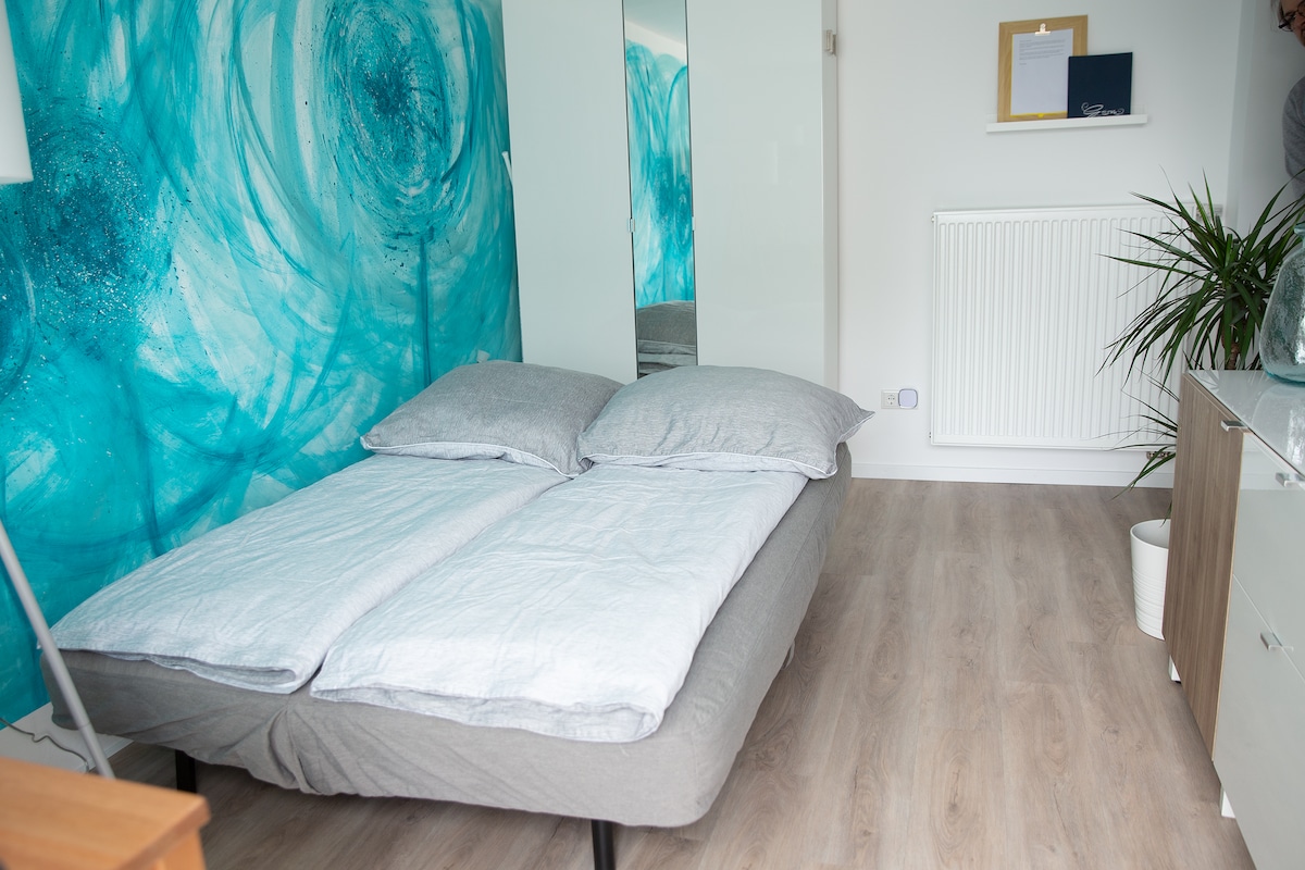 Pe aproximativ 25 mp veți găsi un apartament confortabil cu zonă de living/dormit combinată, o bucătărie mică și o cameră de duș. Apartamentul este potrivit pentru una până la două persoane sau chiar sejururi scurte cu un copil mic. Vă putem pune la dispoziție, la cerere, un pat de călătorie. Our All incl. conține prosoape de ceai, prosoape și lenjerie de pat proaspătă. Dacă stai mai mult, vei primi, desigur, prosoape curate și prosoape de ceai la cerere.