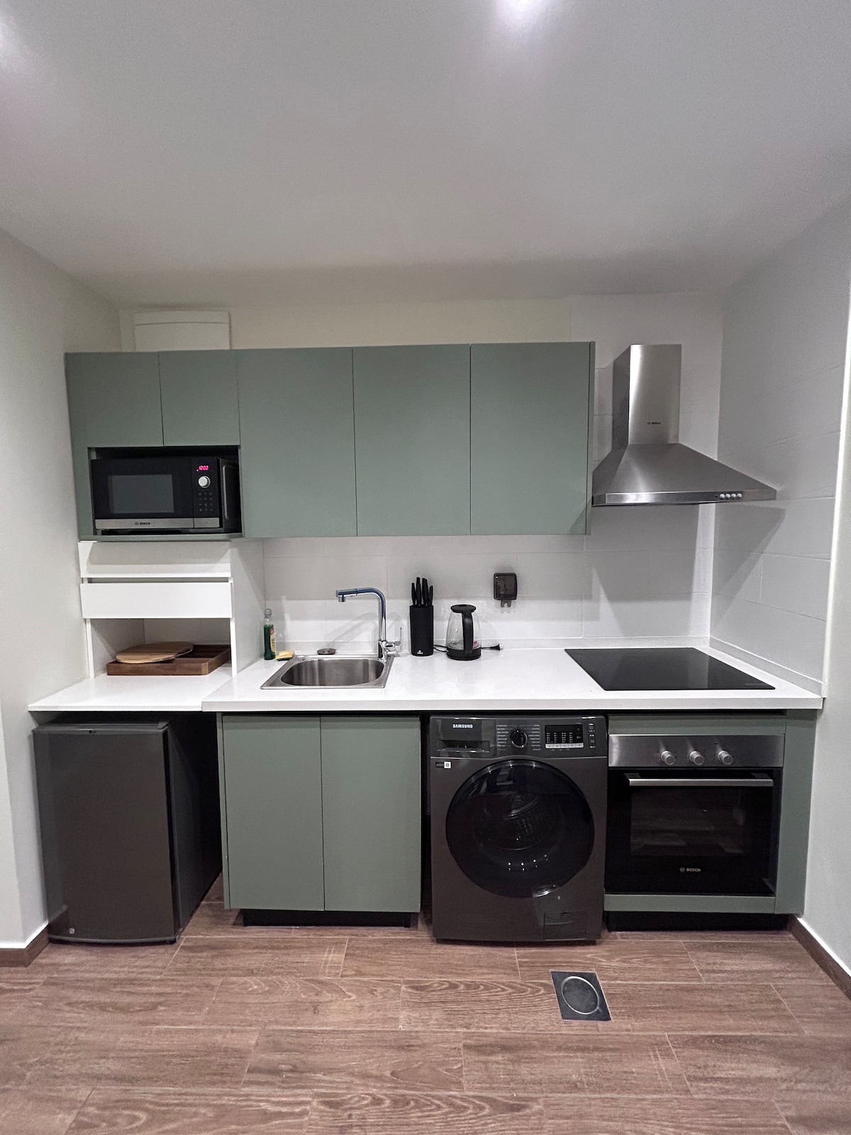 Enjoy a stylish stay in this modern studio at Harmonia Residence, ideal for business or leisure. Guests have access to a modern pool, cinema area, children’s playground, and a fully equipped gym with lockers and showers. The building is eco-friendly, featuring lush greenery and a green waste management plan for sustainability. Includes underground parking, 24-hour security, and 24-hour power. Just 10–12 minutes from the airport and 5 minutes from Kozo, Santoku, and Sky Bar.