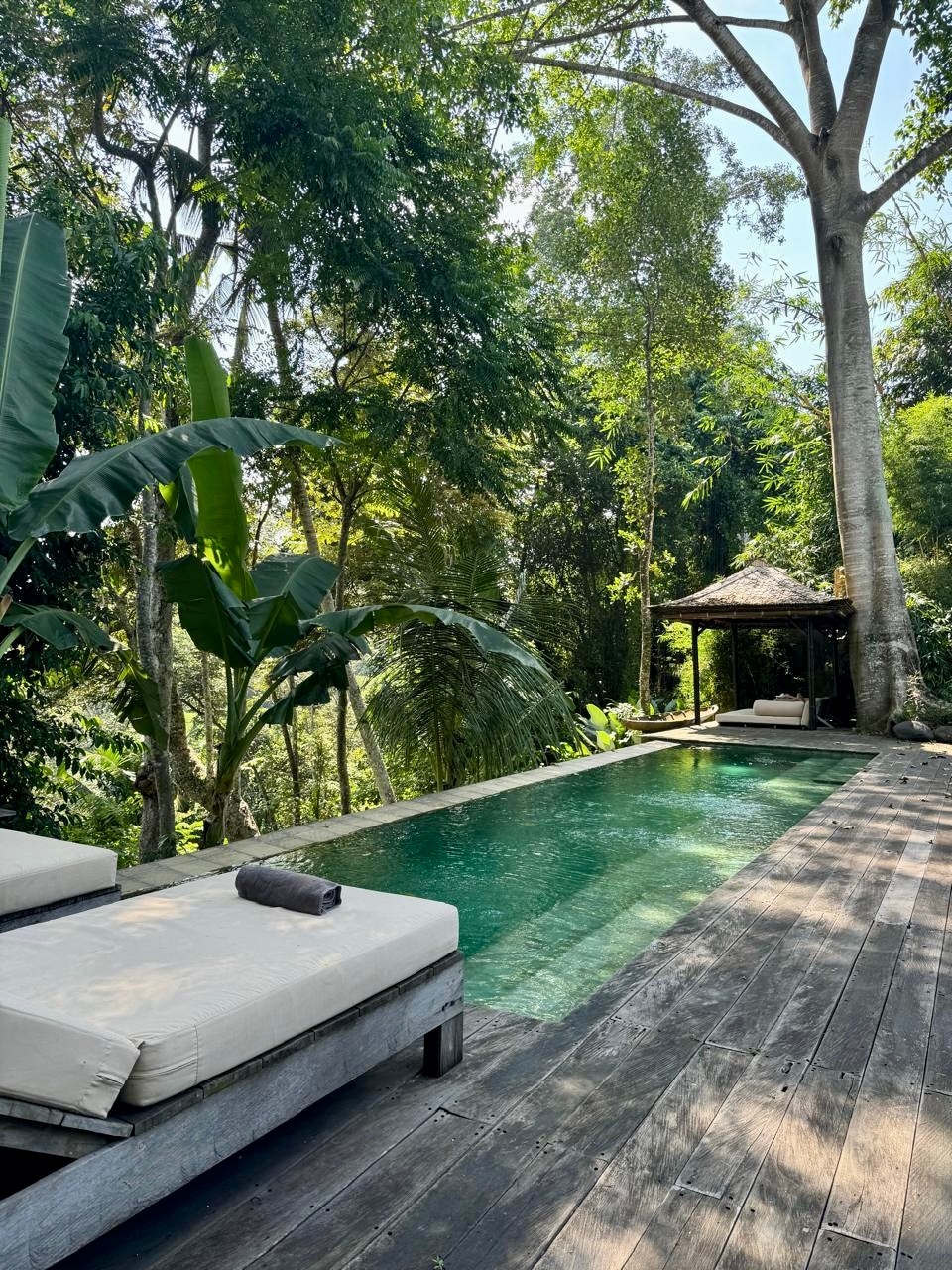 Evadează în propria vilă privată din junglă, cu piscină, un sanctuar retras unde luxul întâlnește natura. Love Ashram este un refugiu romantic pentru relaxare profundă și conexiune. Înconjurat de verdeață luxuriantă, bucură-te de intimitate, vedere la junglă și o atmosferă liniștită - ideală pentru cupluri, lună de miere și iubitorii de natură care caută o evadare liniștită în Ubud. Ca parte a peisajului viu, câmpurile de orez din jurul vilei trec prin cicluri naturale - însămânțate, în creștere și recoltate - astfel încât priveliștile pot varia pe tot parcursul anului.