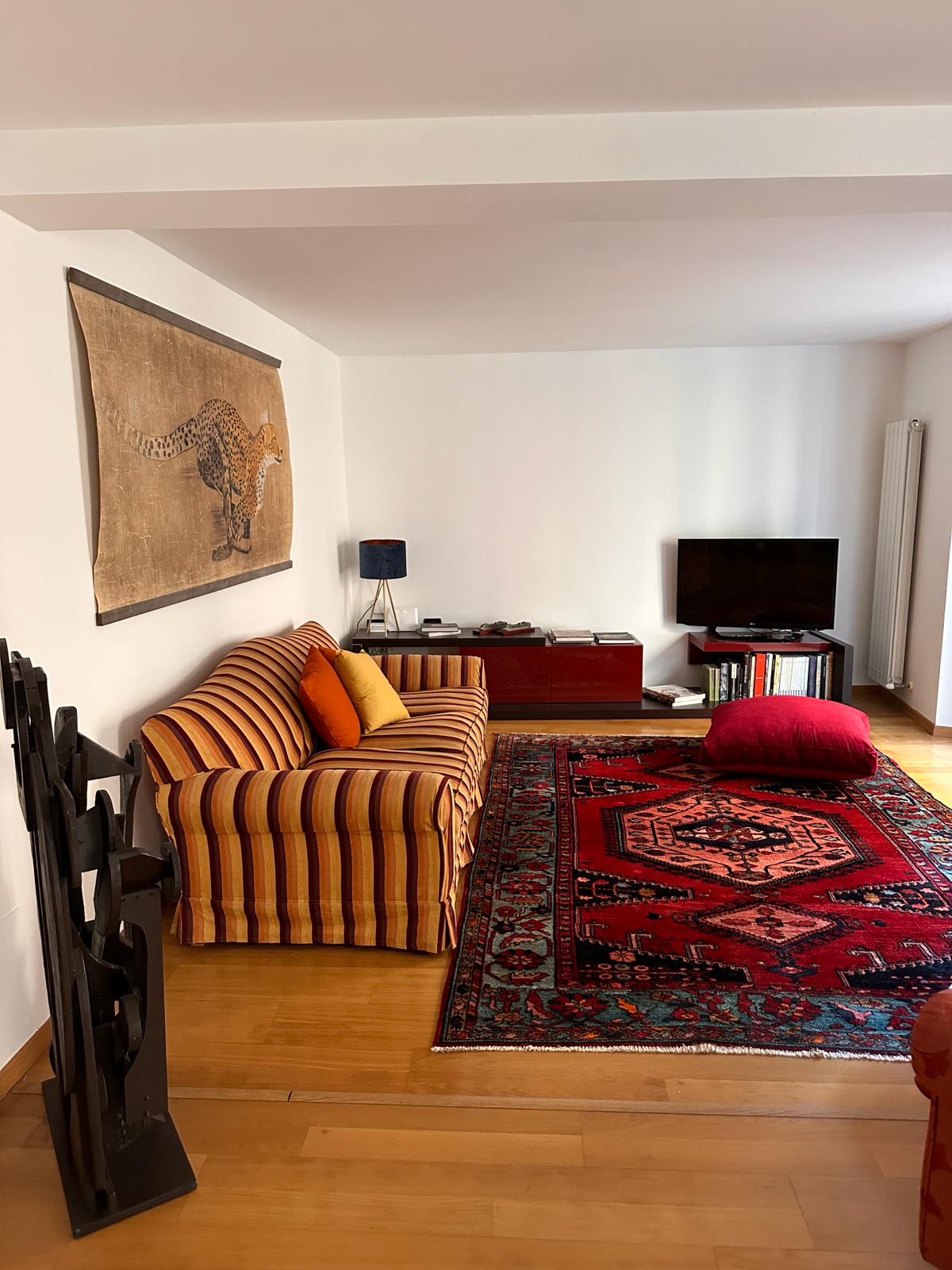 Elegant and bright flat Overlooking the central Piazza Matteotti Opposite the renowned Palazzo Ducale Composed of: -1 distinguished open space living room with comfortable sofa bed and high frescoed ceiling -1 classy dining area with designer table and chairs -1 modern kitchen with all comforts -1 double bedroom located on the mezzanine overlooking the living room also illuminated by the 3 majestic windows -1 modern bathroom complete with glass shower