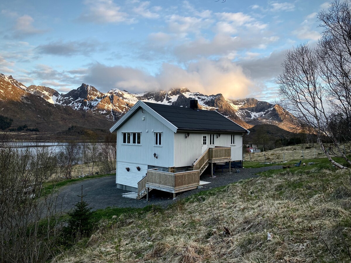 Experience the enchantment of Lofoten in this cabin, a beachfront escape nestled between stunning mountain landscapes and the captivating ocean. See the midnight sun shining above the arctic ocean. Above you the northern lights dances through the winter. This three-bedroom cabin offers an idyllic retreat with direct beach access amidst the magnetic allure of Lofoten's natural beauty. Cleaning is included!