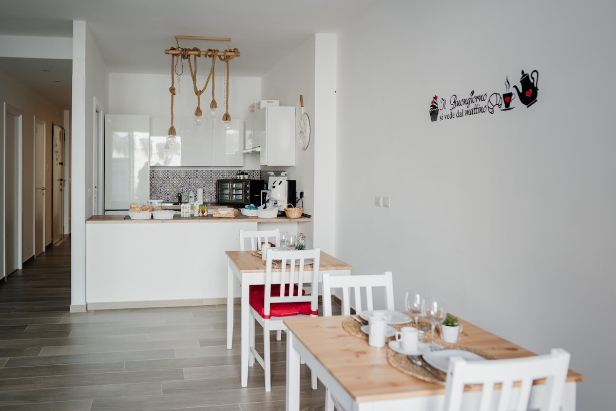 L'appartamento è costituito da tre camere da letto : la prima con letto matrimoniale e lettino per bambini, la seconda con due letti singoli, un ampio soggiorno con divano letto , una Grande camera da breakfast, una cucina e due bagni. Elegantemente ammobiliato con pavimento in parquet. Al vostro arrivo troverete un omaggio di benvenuto,.