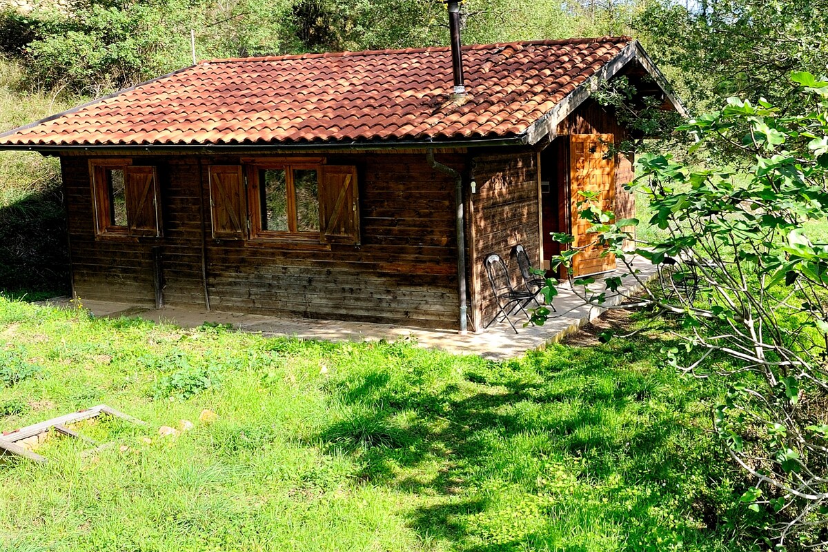Cabană de lemn cu două dormitoare, cu aragaz cu lemne și grătar, pe o pajiște foarte liniștită, căptușită cu copaci, împărțită cu casa proprietarului. Un paradis pentru mersul pe jos, cu bicicleta, relaxare, scris, schițe, meditație, yoga cu păduri de stejar și castan, pășuni cu ierburi și flori sălbatice, podgorii și plantații de măslini supraaglomerate și un mic lac. Cabana nu este luxoasă, dar conține tot ce ai nevoie pentru o ședere departe de tot cufundată în natură. Accesul se face cu o pistă accidentată, dar care poate fi parcursă cu mașina.