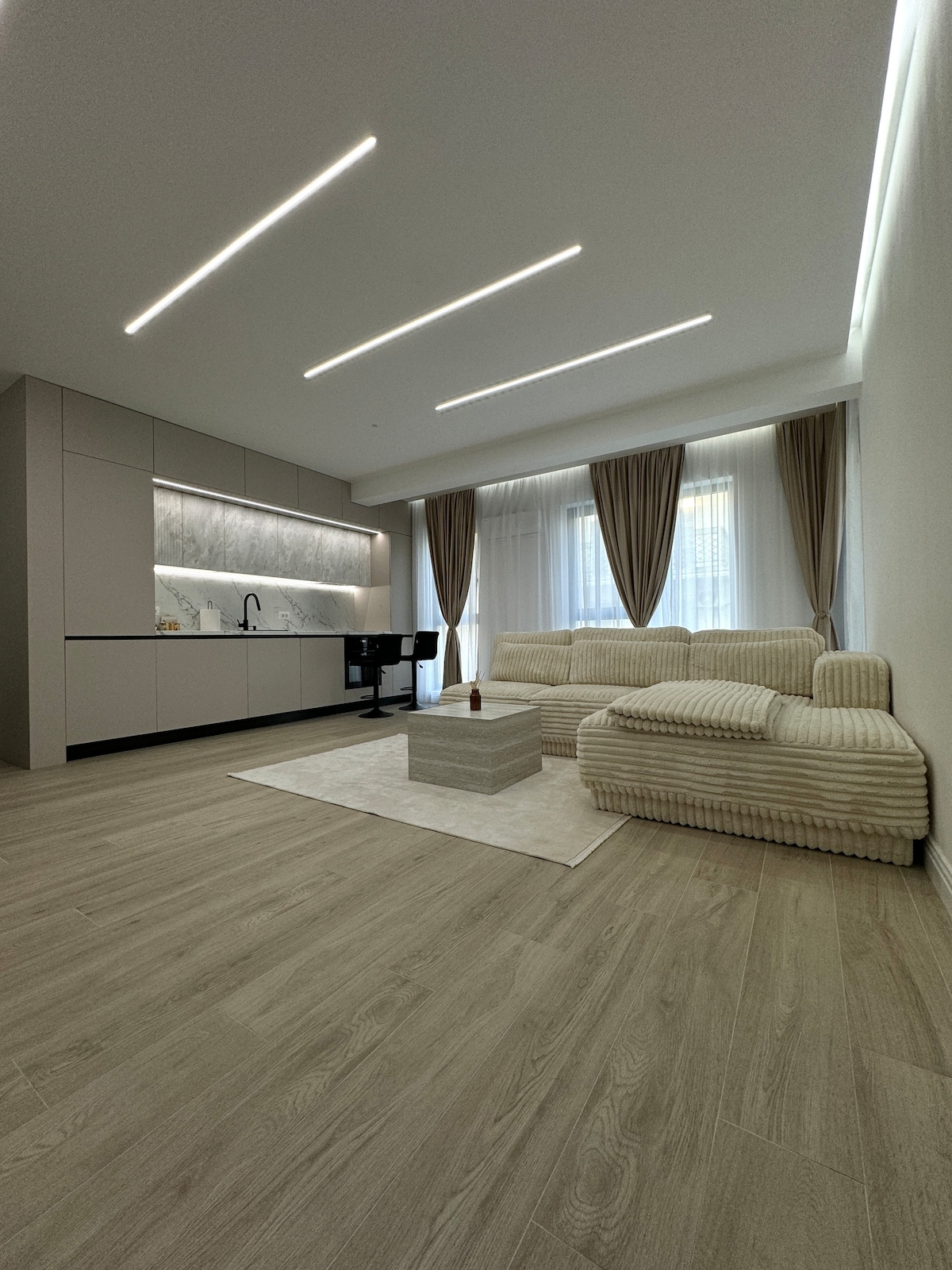 Apartament nou, luminos, cu design modern și parcare gratuită. Se poziționează la intrarea în Timișoara, în vecinătatea benzinăriei Esso. Apartamentul este dotat cu: -bucătărie complet utilată cu cele necesare: plită electrică, cuptor, mașină de spălat vase, frigider, aparat de cafea și veselă. -sufragerie open space în care oaspeții se pot bucura de un film, pe o canapea confortabilă, la un televizor Smart -dormitor cu pat matrimonial -baie cu cabină de duș și mașină de spălat rufe cu uscător.
