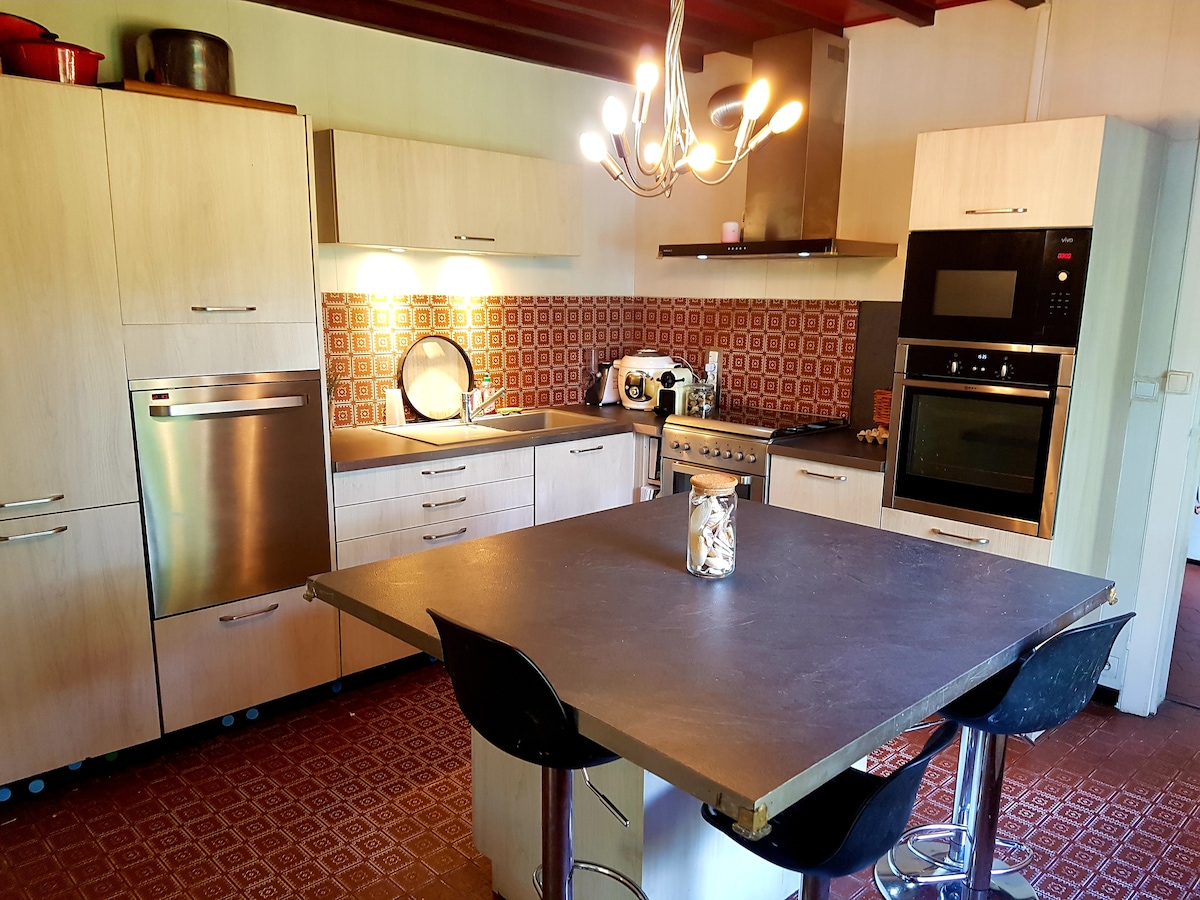 Răsfață-te cu o ședere relaxantă cu familia sau prietenii. Bucură-te de cei 250m2 ai acestei frumoase case din piatră cu autenticitate păstrată. Te așteaptă o masă de ping-pong, piscină, jocuri de societate, darts, jocuri în aer liber, precum și o bibliotecă aprovizionată pentru tineri și bătrâni. Iar noaptea, lângă piscină și în jurul vetrei de foc te vei bucura de un cer înstelat frumos. La + 2 minute distanță: aquapark, alpinism în copaci, minge de vopsea, joc cu laser, minigolf, joc de evadare