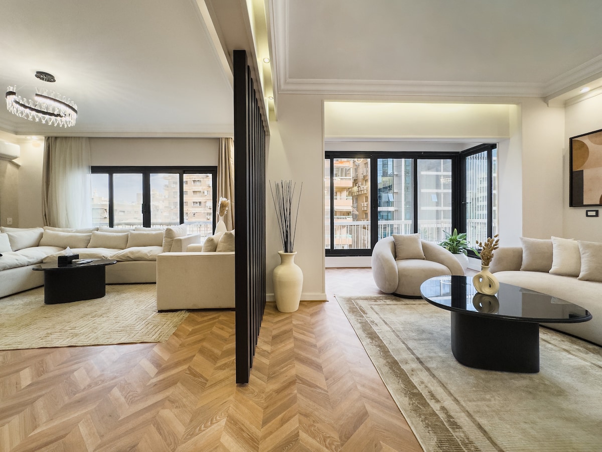 Experience luxury living in this exquisite three-bedroom apartment, Each of the three rooms has a view of the pyramids and the new Egyptian Museum. Two of the three rooms have a Jacuzzi., creating a seamless blend of comfort and grandeur. Perfectly situated, this apartment is a true oasis for those seeking an extraordinary lifestyle.There is also a reception with a corner, a dining room, and a balcony overlooking the pyramids and the Grand Egyptian Museum.