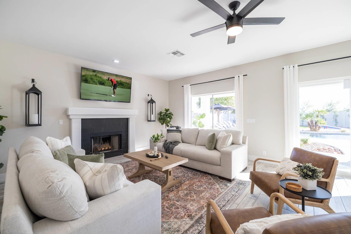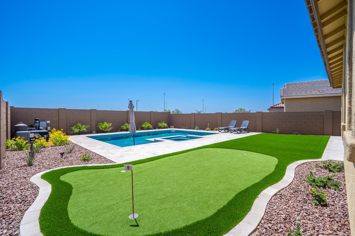 Bucură-te de ambianța binecuvântată a acestei reședințe de stil de viață Glendale, prezentând o atmosferă organică modernă și o curte fermecătoare, în stil complex. Petrece ziua la golf, drumeții sau vizitarea unui joc pe Stadioanele State Farm sau Camelback și întoarce-te pentru o baie relaxantă în piscina încălzită și strălucitoare. Aprinde grătarul și servește cina sub patio! Provocă-ți prietenii la un joc de golf pe terenul de golf imaculat, punând verde, joacă un joc de cărți sau ping-pong! Opțiunile de divertisment sunt nelimitate!