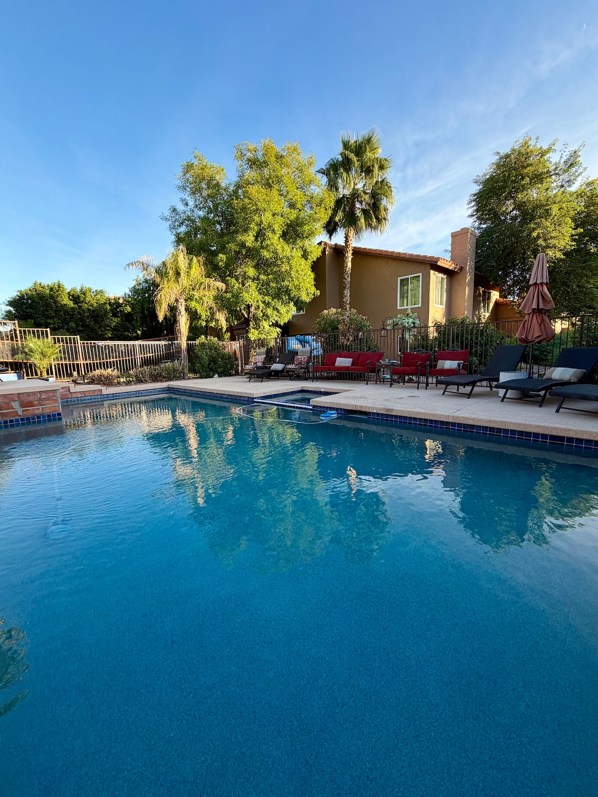 Minunat, confortabil, spațios, peste 2300 de metri pătrați. SFH complet mobilat. Mult spațiu pentru a călători cu living și cameră de familie cu șemineu pe gaz! Bucură-te de Arizona Sun sau Nopți înstelate frumoase în această curte privată în stil stațiune cu terasă acoperită, piscină de joacă și masă de foc cu gaz! De asemenea, include curtea împrejmuită pentru animalele de companie. Animalele de companie sunt binevenite! 1 Parcare în garaj auto. Cartier minunat! Aproape de restaurantele excelente și de accesul la autostradă. AZ TPT#21500053