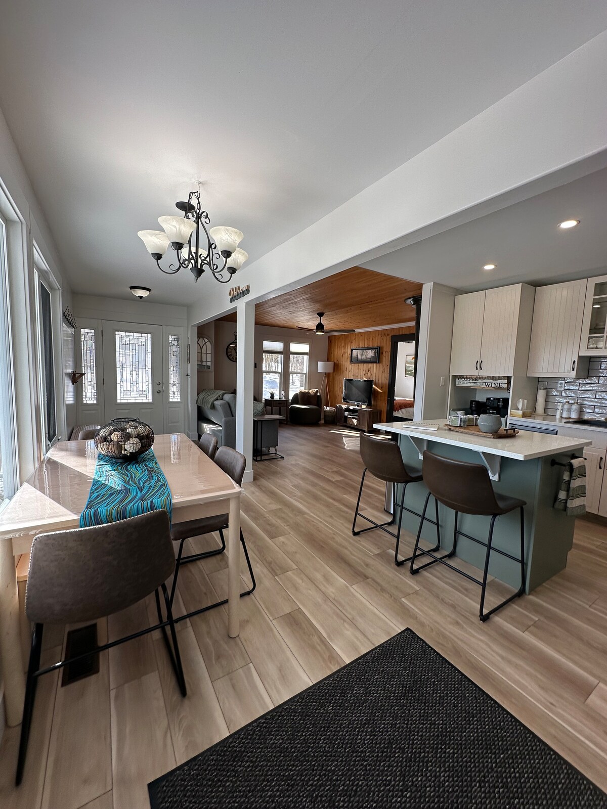 Bine ai venit la Sage & Cedar Lakehouse O escapadă pe tot parcursul anului la care vei dori să revii din nou și din nou. Amplasată printre pini falnici în comunitatea exclusivistă Boyne Lake, această cabană confortabilă pentru toate anotimpurile oferă un refugiu liniștit în țărmurile Floating Stone Lake. Indiferent dacă urmărești Northern Lights dansând deasupra capului, adunând în jurul uneia dintre cele două gropi de foc în aer liber sau te relaxezi pe terasa spațioasă cu vedere uimitoare la lac, Sage & Cedar Lakehouse oferă ceva special în fiecare sezon.