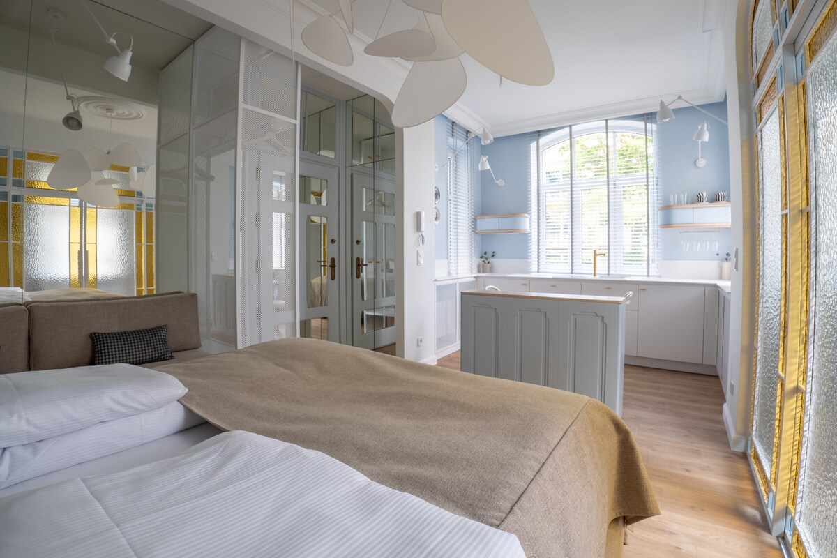 Przytulne studio w samym centrum Gdyni, blisko morza i u podnóża Kamiennej Góry. Idealne zarówno dla miłośników miejskich atrakcji, jak i osób szukających spokoju. Mieszkanie (37 m²) znajduje się na parterze kamienicy. W pokoju wydzielona strefa sypialniana z łóżkiem dwuosobowym oraz część wypoczynkowa z rozkładaną sofą i TV. Osobna, w pełni wyposażona kuchnia, Wi-Fi. Plaża, Bulwar, restauracje i sklepy w zasięgu spaceru.