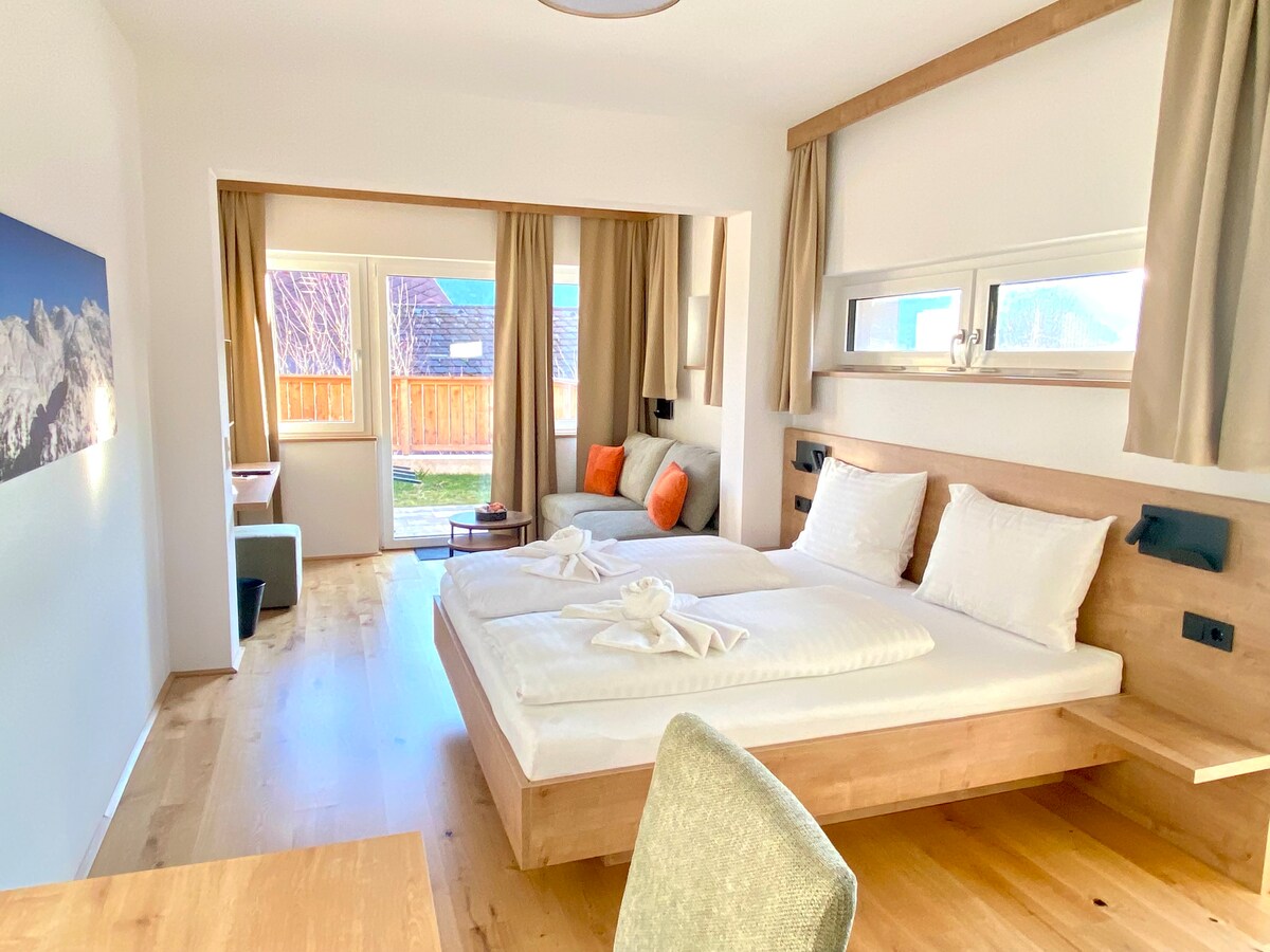 Apartamentul „Feuerkogel” din istoricul Katzerhaus poate găzdui până la 6 oaspeți cu 3 dormitoare, plus o opțiune suplimentară de dormit în livingul spațios. Bucătăria este complet utilată, livingul cu mobilier din lemn de pin și o masă veche germană mobilată nostalgic. Un punct culminant este baia de la începutul secolului, care unește armonios vechiul cu noul, creând astfel o experiență de viață unică.