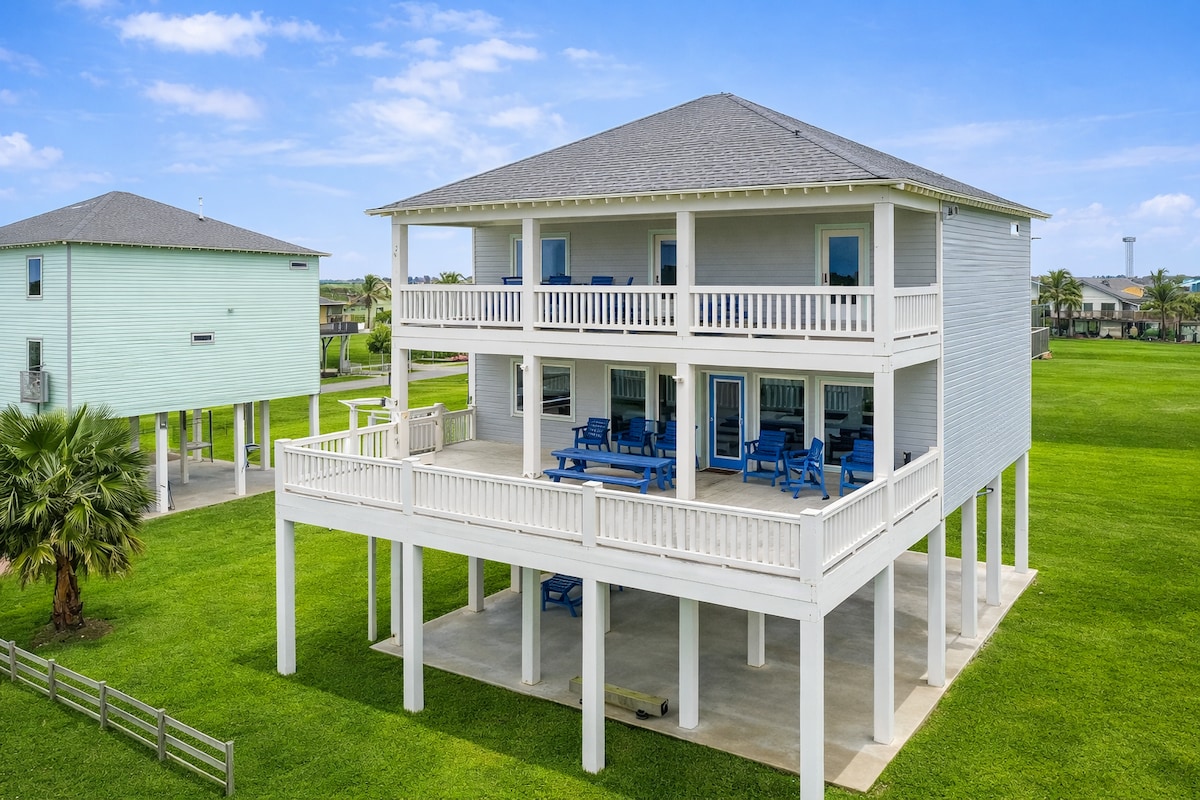 Casă NOUĂ NOUĂ 3/2 superbă pe plajă în subdiviziunea Sandpiper din Crystal Beach. Accesul la plajă privată și magazinul mare sunt la câteva minute de mers pe jos! Perfect pentru ca familiile să experimenteze briza oceanului și atunci când se întorc de la plajă, îndreaptă-te spre dușul în aer liber pentru a clăti înainte ca bucătarul familiei să curbeze o masă delicioasă folosind oale/tigăi în interior sau să pornească grătarul cu cărbune. Spațiul în aer liber include o mulțime de locuri în jurul barului/șemineului pentru a te bucura de jocuri și pentru a urmări apusul romantic/răsăritul soarelui.