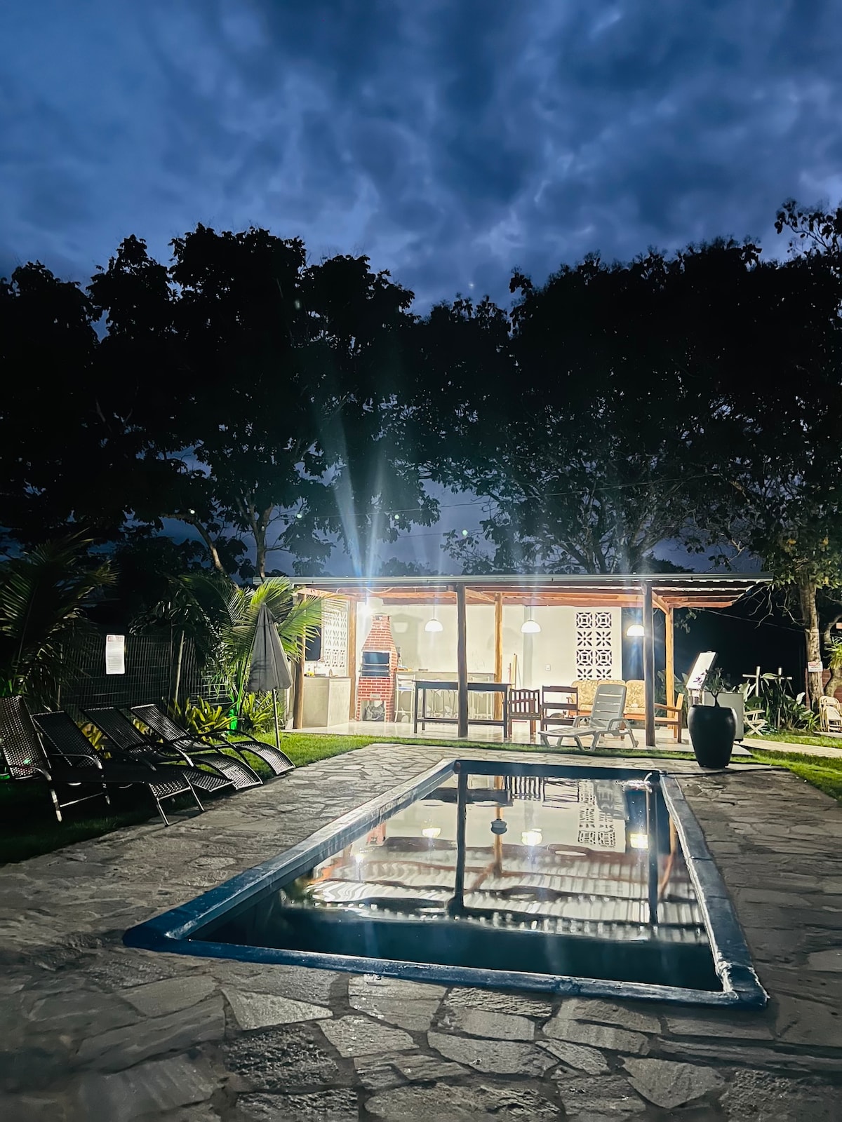 Rancho bem aconchegante com casa na árvore para as crianças .rancho amplo grama em volta quadra de areia com acesso a um Ribeirão com água cristalina , fogão a lenha e uma boa fogueira .Desconecte-se de tudo ao ficar sob as estrelas.