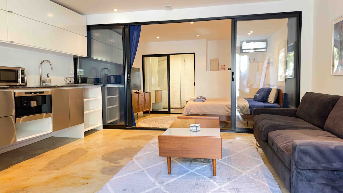 Apartament de lux cu grădină și intrare privată, baie privată și cadă cu hidromasaj într-unul dintre cele mai fierbinți cartiere din SF - Misiunea. Nu există spații comune în această Misiune interioară liniștită, cu un dormitor cu living mare, Xfinity, Apple TV, Wi-Fi de mare viteză. O mulțime de spațiu pentru a te întinde și a te relaxa. Regim strict de curățenie, inclusiv tratament cu lumină UVC de 30 de minute pe cameră, post vacant de minim 24 de ore, ștergere sterilă a tuturor suprafețelor comune. Te rugăm să verifici poziția noastră pe hartă în raport cu locurile pe care intenționezi să le vizitezi în SF. Te rugăm: fumatul este interzis.