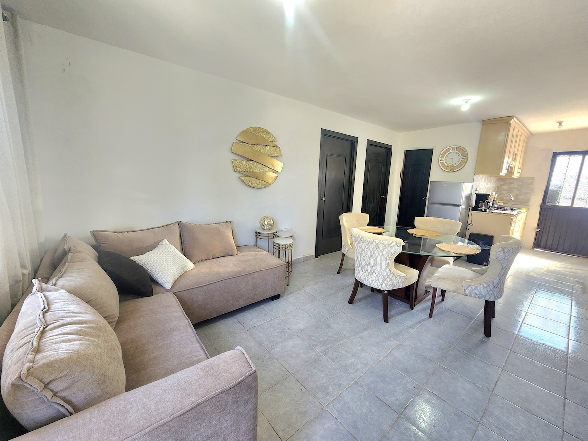 Apartament magnific, mobilat și foarte central situat. Luminos și elegant. Caracteristici: 2 dormitoare 1 pat dublu 2 paturi de o persoană 1 1/2 băi Sufragerie Curte interioară de agrement cu grătar Spațiu de lucru mini split în fiecare dintre zonele sale Serviciu TV complet de bucătărie și WiFi de mare viteză pentru munca de birou de acasă Netflix Roku TV La două străzi de bulevardul principal din Gómez Palacio, unde există centre comerciale, restaurante și baruri La 5 minute distanță Clinica IMSS #46