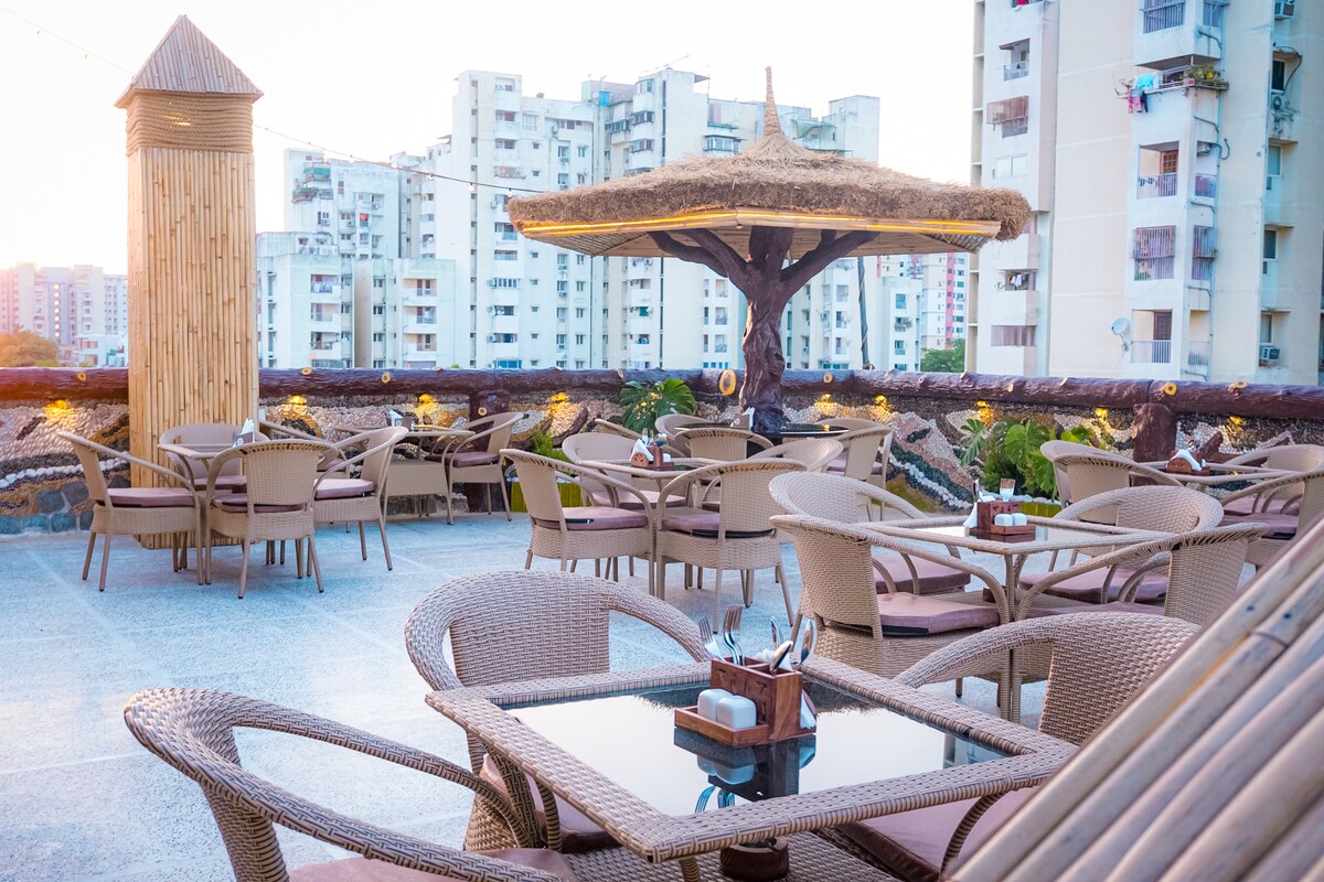 This luxury 2BHK penthouse sits on a hotel rooftop, giving you complete independence — no society rules, no awkward neighbors, no interruptions. The lift opens straight into your private rooftop, making it feel like your own sky villa. Perfect for: 🎉 Parties & celebrations 🥂 Pre-wedding / birthdays 🌃 Chill nights with skyline views You get a private rooftop living room with kitchen, 2 rooms, 2 washrooms , all amenities, extra matress if needed (chargeable) All damages will be chargeable.