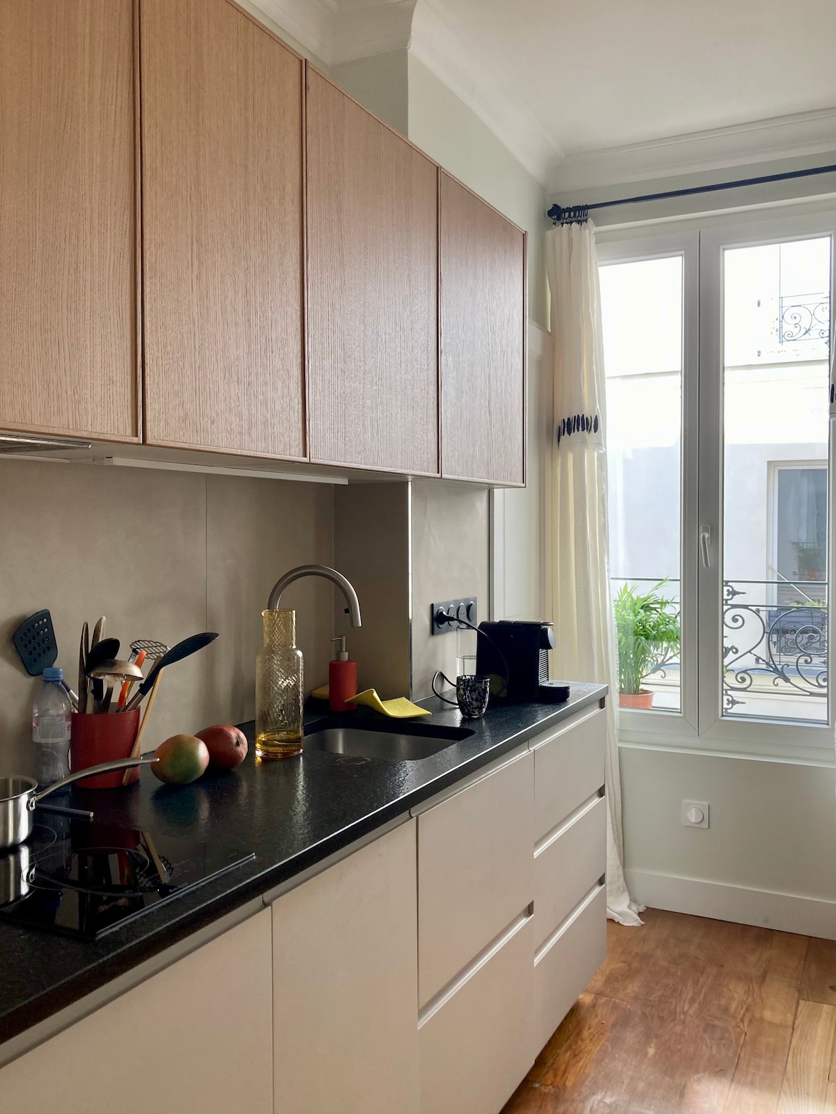 Bine ai venit în paradisul nostru cu un dormitor, proiectat meticulos cu gust. Bucură-te de liniștea curții și de terasa sa mică, în timp ce te afli în mijlocul unui cartier plin de viață. Spațiul emană o esență caldă, ca acasă. Situat în inima scenei culinare și cafenele la modă, pe malurile canalului Saint Martin, este, de asemenea, la câteva străzi distanță de farmecul istoric al cartierului Le Marais.