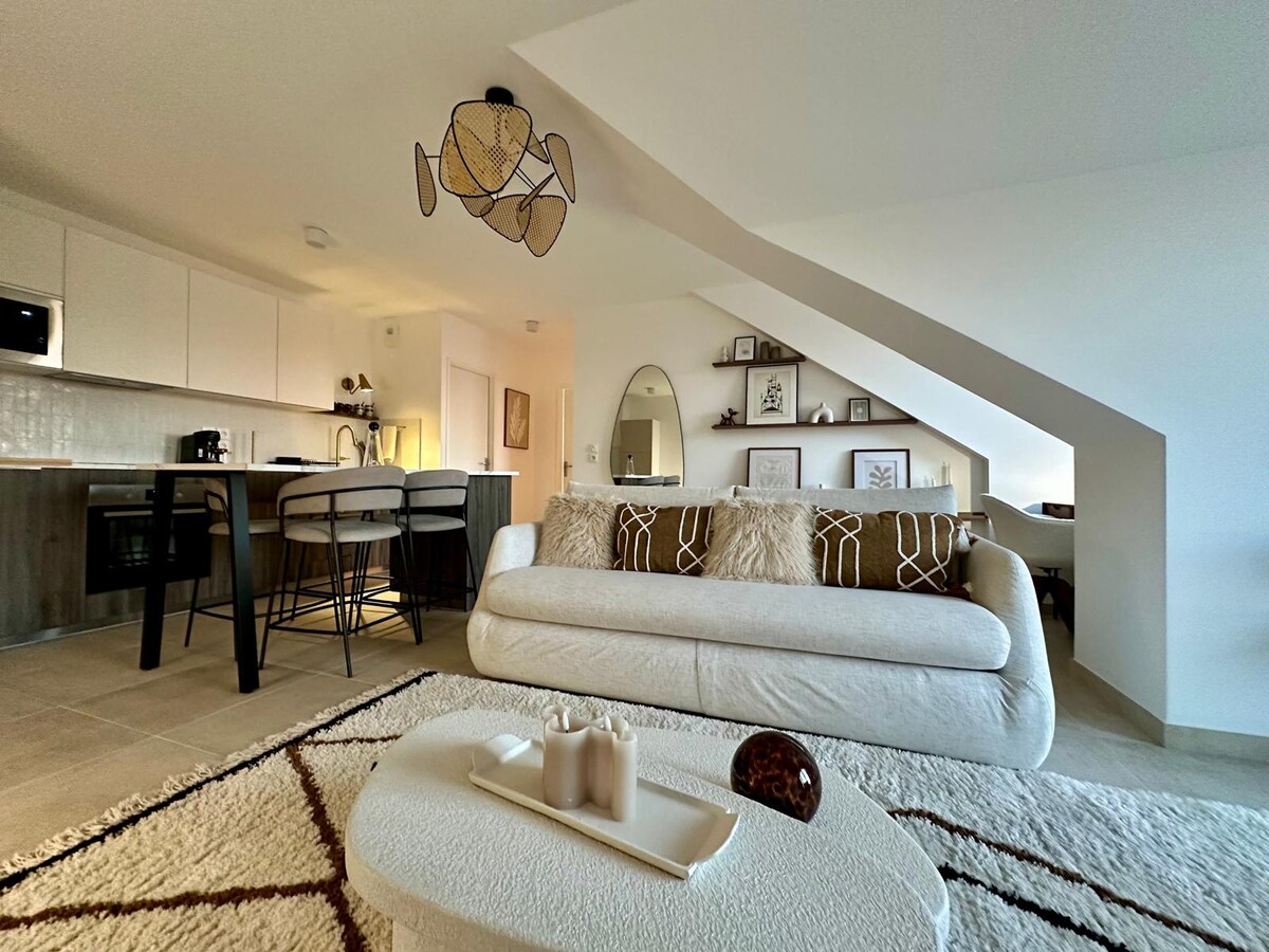 Bine ai venit în acest loft frumos pentru 6 persoane, cu 2 dormitoare separate și un living primitor. Îmbină farmecul atemporal cu dotările moderne, situat în apropierea atracțiilor turistice ✨ Poziție perfectă: → Doar 25 de minute până la Disneyland → Gară la doar 3 minute de mers pe jos → Paris la doar 20 de minute cu trenul Cu parcare privată și acces facil la mijloacele de transport în comun, șederea ta fără stres este garantată!