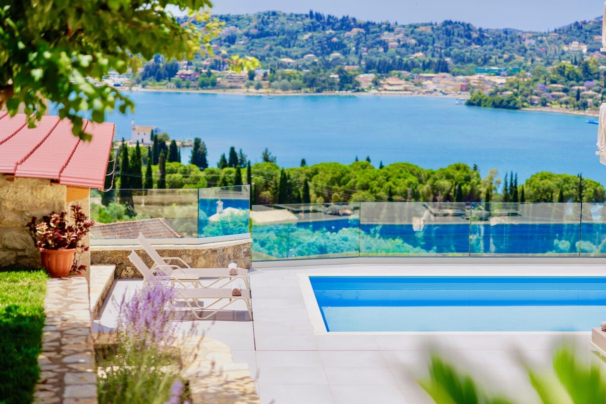 Vila se află în zona Kontokali, într-un peisaj verde înconjurat de livezi de măslini, oferind o priveliște uimitoare asupra Mării Ionice. Este în vârful unui deal foarte liniștit, este un loc foarte privat și liniștit pentru a vă bucura de vacanțe. Se află la 10 km de aeroport și la 9 km de centrul istoric din Corfu. Supermarketuri, farmacii și restaurante pot fi găsite în apropiere. De asemenea, ideal pentru grupuri de tineri. De asemenea, îl recomandăm pentru evenimente ( zile de naștere, burlaci, yoga - dans - tabere de meditație).