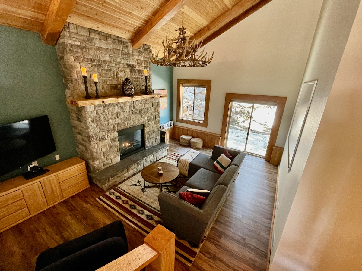 Relaxează-te și bucură-te de aerul proaspăt de munte într-o izolare frumoasă din lemn, cu ferestre mari de la catedrală, terasă, cameră mare boltită și un aragaz confortabil pentru a-ți încălzi degetele de la picioare. Coboară în sala de jocuri și fotografiază piscina, cântă la pian, savurează vin și prinde un film pe o canapea/fotoliu rabatabil din piele. Îndreaptă-te spre schi🎿, drumeții, ciclism, alpinism🚴, pescuit🧗♂️ 🎣, caiac și golf⛳️ + yoga gratuită de la distanță🧘 în timpul șederii tale. Încheie-ți ziua înmuind acele picioare obosite într-o cadă cu hidromasaj sub stele ✨ și repetă după cum este necesar.
