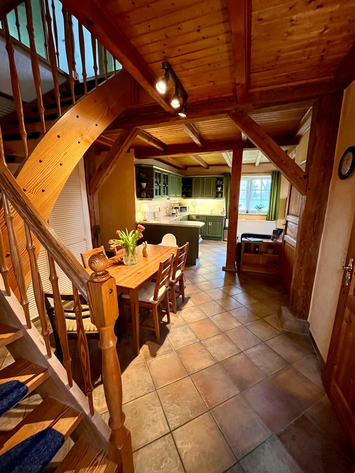 La o fermă originală am creat o casă de vacanță pentru a visa cu multă dragoste. Dacă ești în căutare de pace și relaxare, acesta este locul potrivit! O grădină mare te invită să rămâi. Seara, te poți așeza confortabil lângă foc sau poți citi o carte pe canapeaua confortabilă la un pahar de vin. De la Groß Markow poți explora împrejurimile cu bicicleta sau mașina. Locul este situat între Kummerower și Lacul Teterower. La Marea Baltică se poate ajunge în doar o oră.