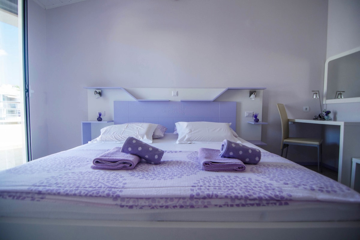 Spacious apartment with a total area of 77 m2 is located on the third, highest floor. Two air-conditioned bedrooms with one double and two twin beds which can easily be connected to make a compact double bed, on your request. The bathrooms are equipped with a shower cabin and a hairdryer. Both rooms have a large terrace overlooking the sea where you can refresh yourselves in the summer evenings. Perfect for enjoying a glass of wine on a comfortable sofas completed with a beautiful sunset.