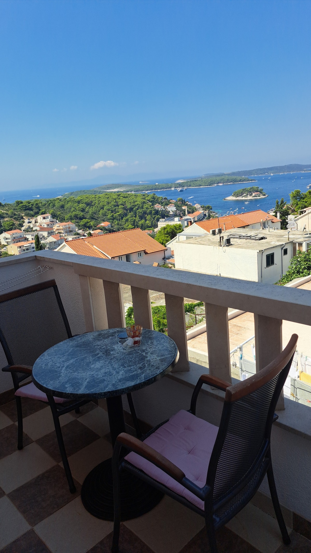 Cameră privată confortabilă, cu o bucătărie mică, dar bine echipată pentru prepararea meselor, o baie privată și un balcon mare cu vedere la mare, Insulele Pakleni și insulele Vis și Korčula. Apusul frumos și romantic face ca acesta să fie locul perfect pentru a încheia ziua. Wi-Fi gratuit, spălătorie, loc de parcare, prosoape de plajă, dacă este necesar, aer condiționat și sugestii excelente Hvar de la gazda ta (un localnic) și multe altele :) Vino să te relaxezi și să te bucuri de orașul Hvar!