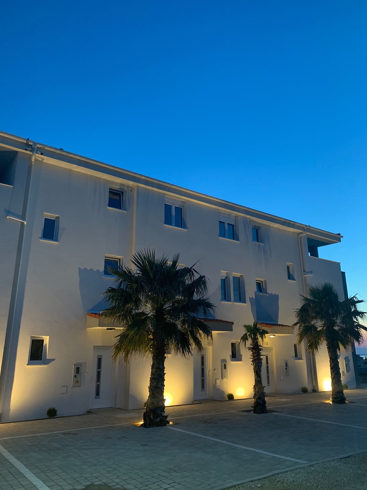 Vilă calmă și liniștită, cu mult verde în curtea mare și plaja cu caracteristici private. Doar trei apartamente din această vilă garantează o ședere plăcută fără mulțime. Apartamentele sunt spațioase, cu terase mari cu vedere la mare și sunt complet echipate cu toate mobilierul, aparatele și aerul condiționat. Plaja este accesată la mai mulți pași de curte. Are o parte nisipoasă potrivită pentru copiii mici, umbră, dar un dig de beton și acces cu barca.