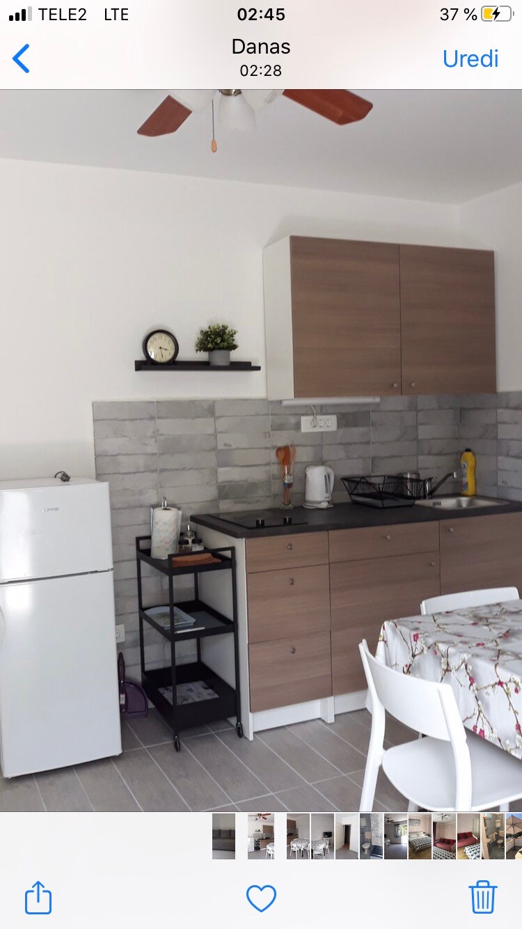 Există un apartament mai mare, unul mai mic și un studio.Apartamentele sunt recent decorate, cu locuri de parcare securizate, în centru. Lângă portul ACI, terenul de fotbal, școală, plajă la 200 de metri. Posibilitatea de a folosi gratar pe terasa în aer liber. Apartamentele au vedere la mare, atât din dormitoare, cât și din living. Fiecare cameră are propriul balcon și propria baie privată. Cazează-te, inclusiv masa din bucătărie și terasa cu vedere la mare. Animalele de companie sunt acceptate la un cost suplimentar.