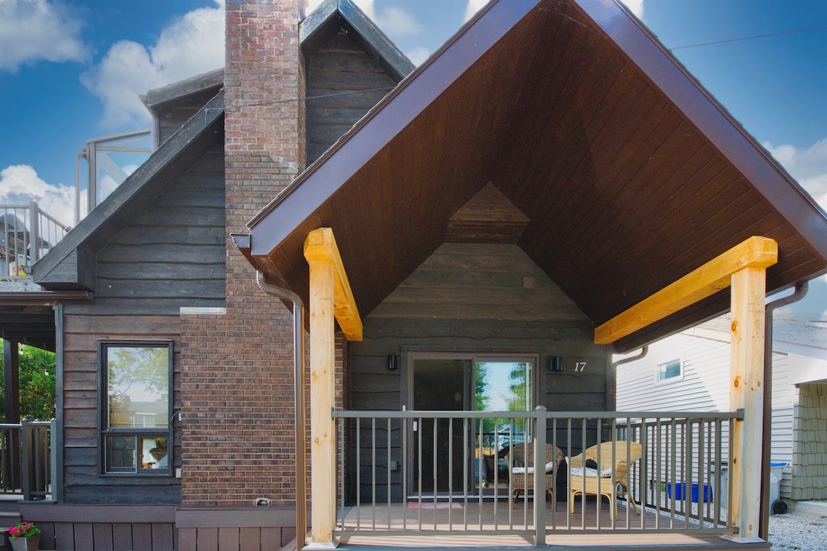 CEA MAI BUNĂ locație posibilă! Cabană de familie perfectă sau escapadă pentru fete! Bucură-te de faimosul lac Huron Sunsets în timp ce te înmoi în cada cu hidromasaj de sub terasa noastră imensă acoperită (cu TV de 65 inchi în timpul verii) Frumos mobilată și complet renovată. WIFI, Netflix, aer condiționat. Dușuri din sticlă. Mașină de spălat/uscător. Grătar. Mașină de cafea Keurig și cafetieră. Parcare pentru 8 mașini. 50 de PAȘI de strada principală. Urmărește-ne pe @Lakesidebeachhouse pentru actualizări privind anularea și disponibilitatea
