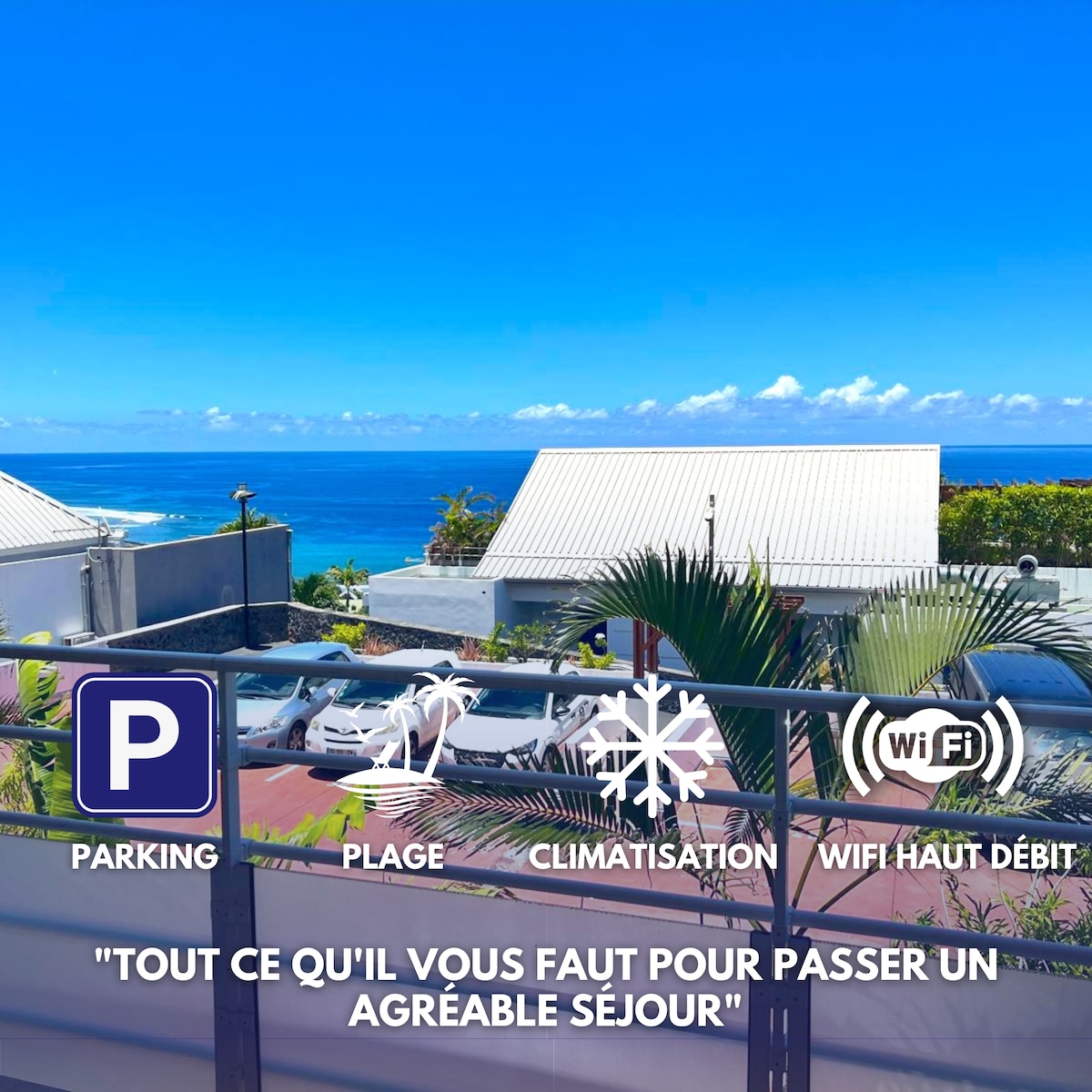 Situat la vâsle, la sud-vest de insulă, apartamentul datorită poziției sale, are vedere la linia de coastă și oferă priveliști uluitoare ale oceanului, inclusiv plaja cu nisip negru a iazului-salé les bains. Liniștea locului și decorul său magic te vor lăsa cu amintiri minunate.