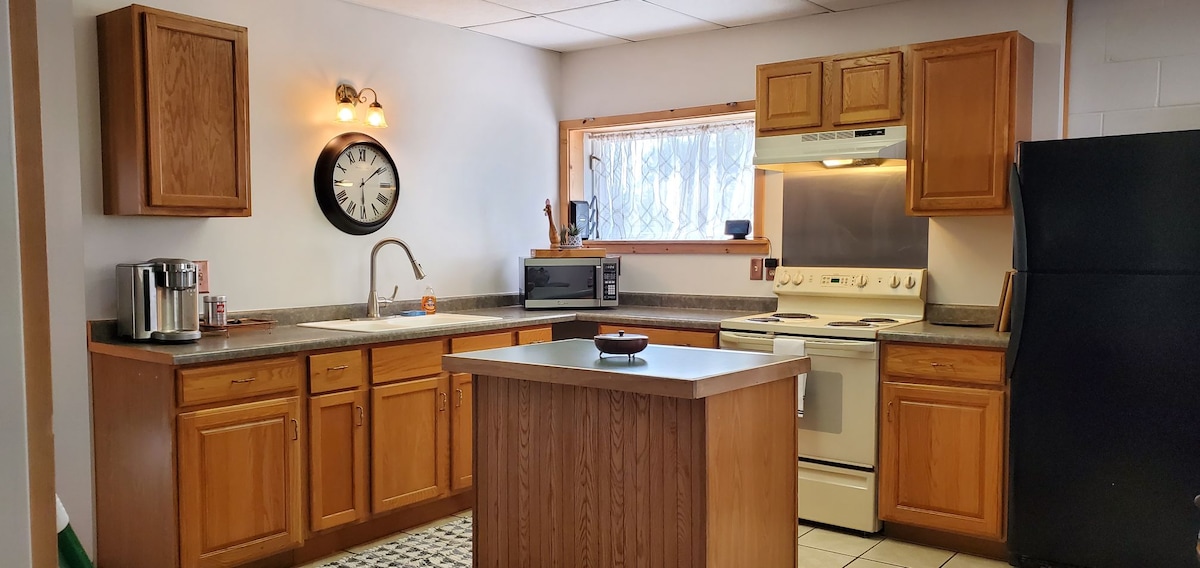 Casă de oaspeți confortabilă, amplasată pe partea de deal a River Road, Traverse City~ 1/4 Mile până la râul Boardman. 10-15 minute de mers cu mașina până în centrul orașului, Interlochen sau Kingsley. Concepută pentru confort cu un stil modern~contemporan. Concept deschis cu 1 dormitor privat (pat matrimonial). Dotări: canapea extensibilă, jocuri, masă de cărți, cărți, golf de lectură, gaură de porumb, W/D, bucătărie aprovizionată, duș în picioare, masă, aer condiționat pentru ferestre, 2 televizoare cu Wi-Fi. Parcare pentru 2-3 mașini, poate găzdui până la 4 persoane. Câinii în lesă sunt bineveniți.