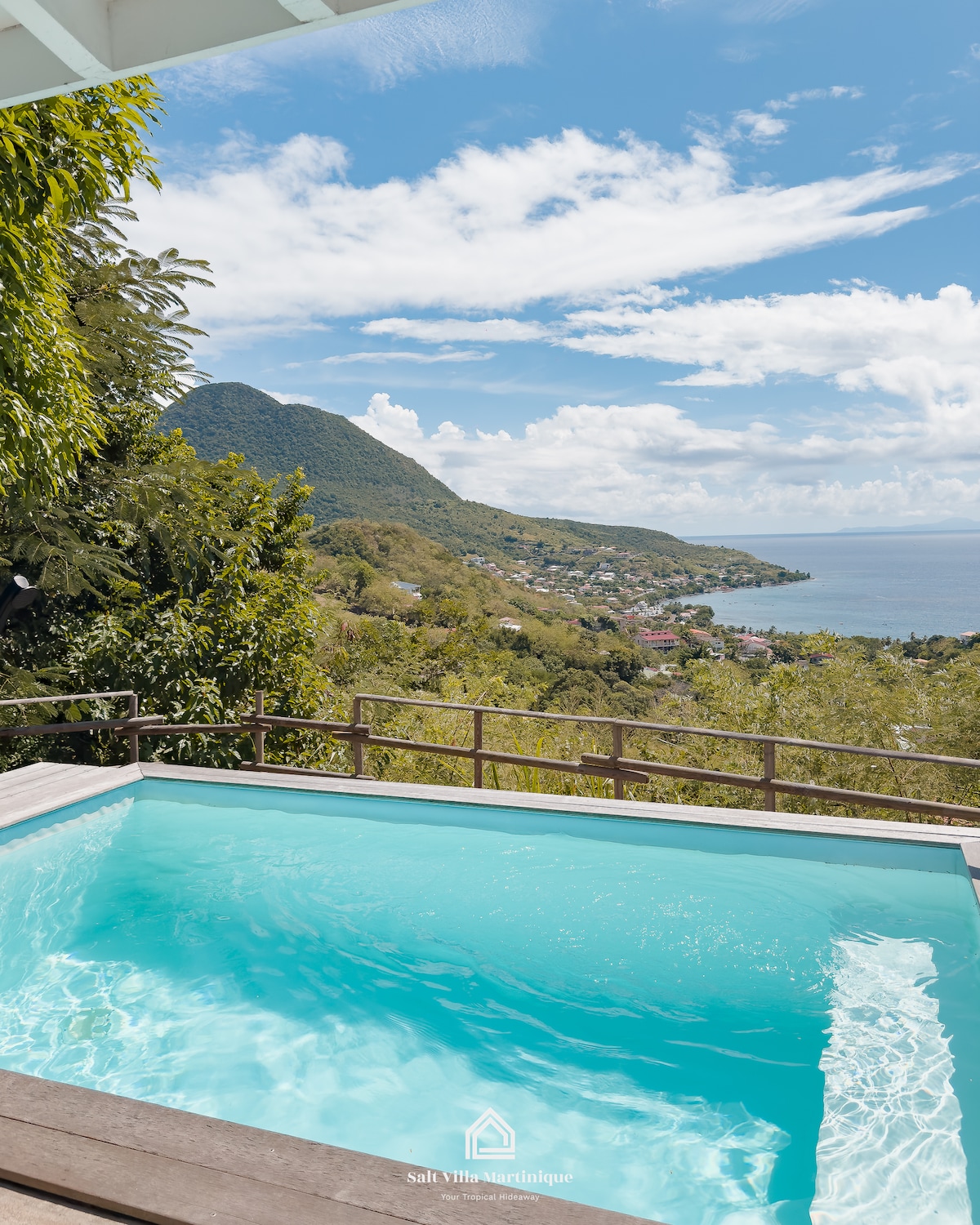 Magnifique villa créole de plein pied ouverte, avec vue sur la mer, le Rocher du Diamant et sur le Morne Larcher. Lumineuse et aérée, elle est conçue et aménagée pour profiter des vastes espaces de l’intérieur et de la vie à l’extérieur : véranda, deck en Ipé autour de la piscine, kiosque en terrasse, jardin. Petit-déjeuné ensoleillé sur la véranda, quelques brasses dans la piscine à la température idéale, bain de soleil allongé sur les transats, apéro du soir. La mer. Ambiance couleur. Internet