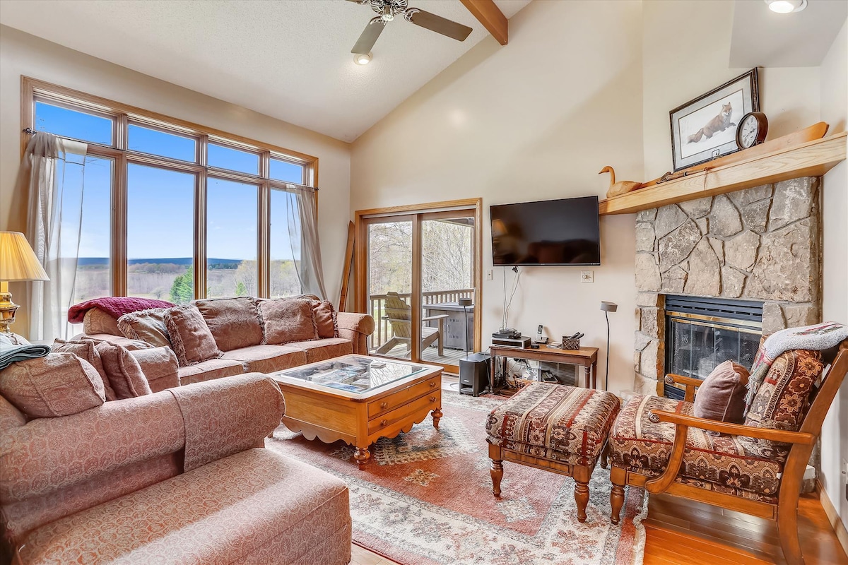 Breathtaking View from every corner of this 5BR (4 master) , bathed in natural sunlight, enjoy the view of the sunset, inside to find the soaring cathedral ceilings, hardwood floors, and 3 Cozy stone surround fireplaces for warm/elegance, HVAC,high speed EV Charger, the expansive deck spans the width of the home, offering a perfect vantage point to soak in panoramic vistas. Located in Old Timberline Gated Community, mins to Timberline and Canaan Ski, Lakes and walk to Dolly Sods. 5th BR/Loft
