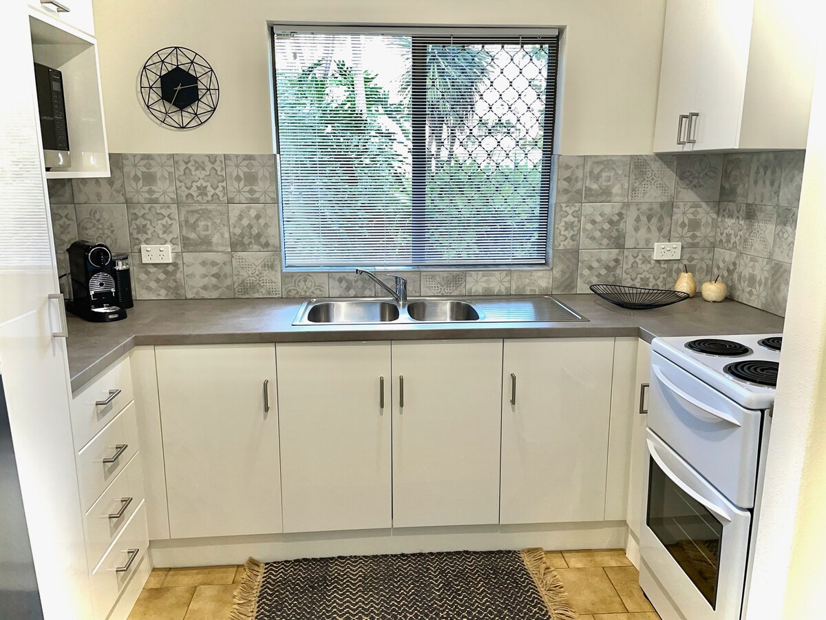 Casa noastră este un apartament frumos amenajat, cu 3 dormitoare, la numai 20 m de porțile din față ale Gabbinbar Homestead. Dispunând de finisaje și mobilier de lux, inclusiv 3 dormitoare (dotate cu lenjerie de calitate hotelieră), 2 băi spațioase, bucătărie de dimensiuni complete, Smart TV în fiecare dormitor, spălătorie complet echipată, aer condiționat, curte mobilată, oferind o experiență de cazare premium pentru până la 8 oaspeți.